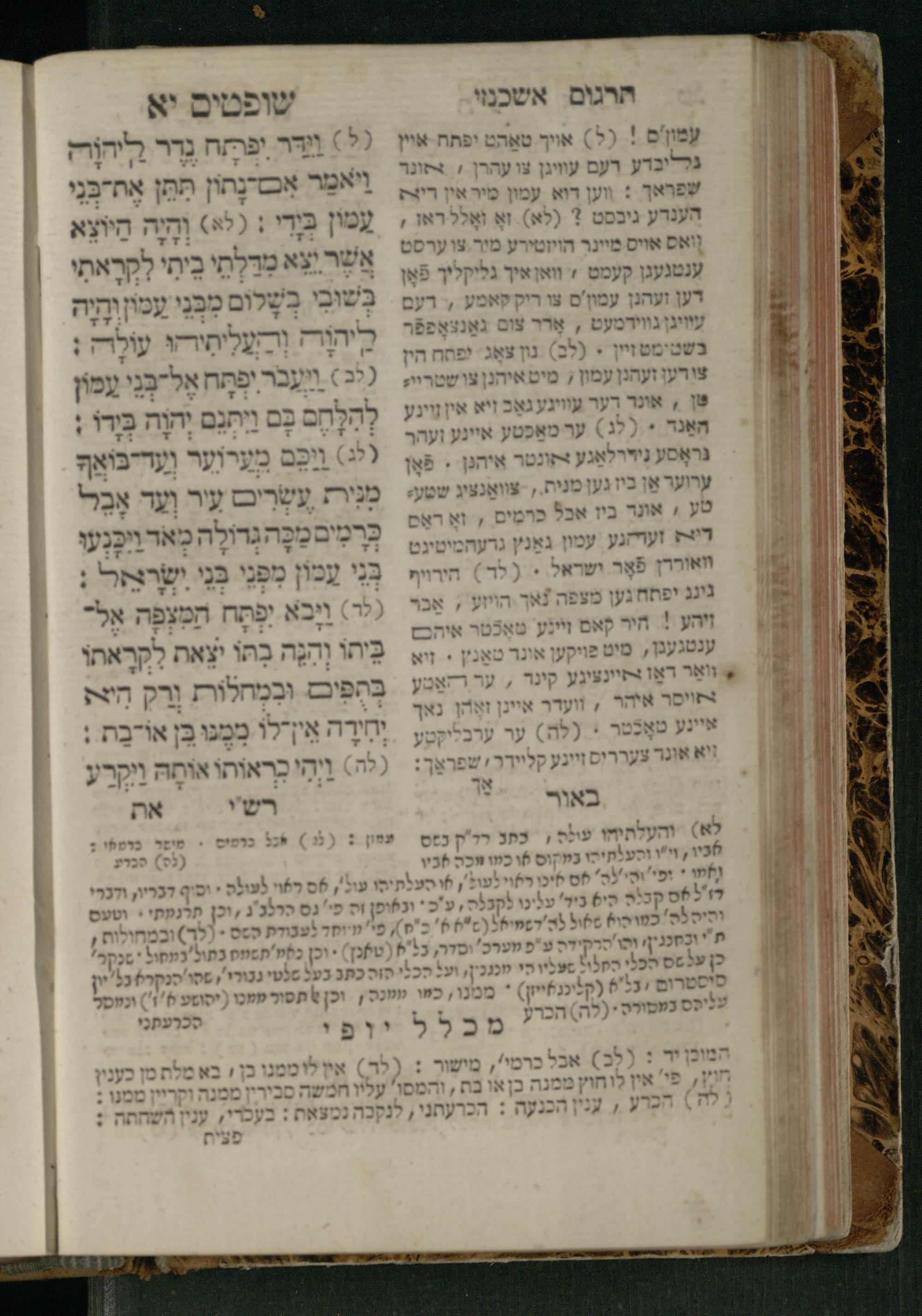 Sefer Shofṭim / ʿim targum Ashkenazi, u-veʾur, meturgam u-mevoʾar me-et R. Meʾir Oborniḳ, ṿe-hosafti bo pe. ... Rashi z.ts.l., ṿe-gam be-khol maḳom she-neʿemar be-perusho milat b.l.ʿa.z., ba be-tsedo ... perusho b.l.A. Ṿe-nilṿeh elaṿ pe. Mikhlal yofi ... ...ספר שופטים / עם תרגום אשכנזי, ובאור, מתורגם ומבואר מאת ר׳ מאיר אברניק, והוספתי בו פי׳... רש״י זצ״ל, וגם בכל מקום שנאמר בפירושו מלת בלע״ז, בא בצידו ... פירושו בל״א. ונלוה אליו פי׳ מכלל יופי ... ...