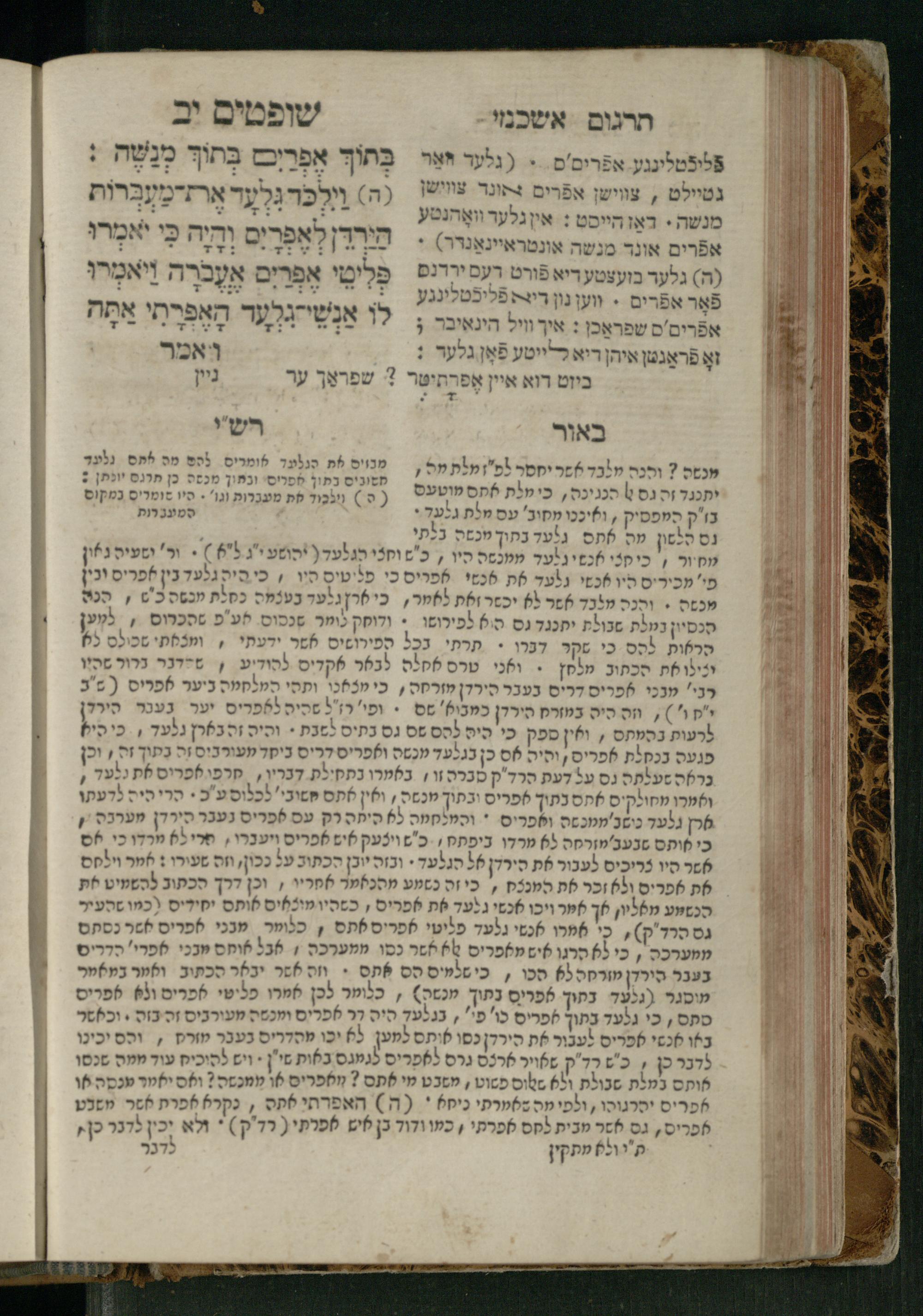Sefer Shofṭim / ʿim targum Ashkenazi, u-veʾur, meturgam u-mevoʾar me-et R. Meʾir Oborniḳ, ṿe-hosafti bo pe. ... Rashi z.ts.l., ṿe-gam be-khol maḳom she-neʿemar be-perusho milat b.l.ʿa.z., ba be-tsedo ... perusho b.l.A. Ṿe-nilṿeh elaṿ pe. Mikhlal yofi ... ...ספר שופטים / עם תרגום אשכנזי, ובאור, מתורגם ומבואר מאת ר׳ מאיר אברניק, והוספתי בו פי׳... רש״י זצ״ל, וגם בכל מקום שנאמר בפירושו מלת בלע״ז, בא בצידו ... פירושו בל״א. ונלוה אליו פי׳ מכלל יופי ... ...