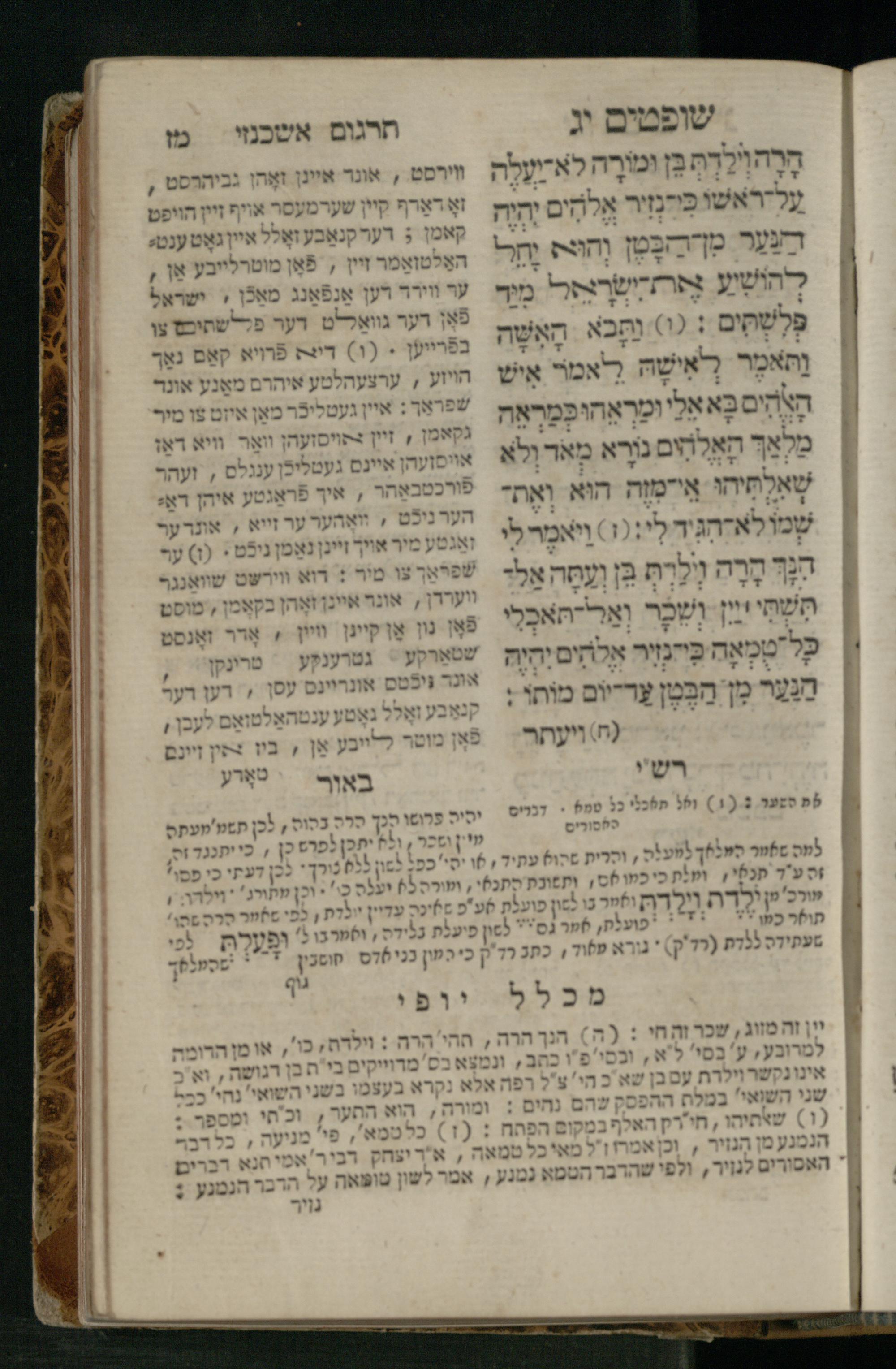 Sefer Shofṭim / ʿim targum Ashkenazi, u-veʾur, meturgam u-mevoʾar me-et R. Meʾir Oborniḳ, ṿe-hosafti bo pe. ... Rashi z.ts.l., ṿe-gam be-khol maḳom she-neʿemar be-perusho milat b.l.ʿa.z., ba be-tsedo ... perusho b.l.A. Ṿe-nilṿeh elaṿ pe. Mikhlal yofi ... ...ספר שופטים / עם תרגום אשכנזי, ובאור, מתורגם ומבואר מאת ר׳ מאיר אברניק, והוספתי בו פי׳... רש״י זצ״ל, וגם בכל מקום שנאמר בפירושו מלת בלע״ז, בא בצידו ... פירושו בל״א. ונלוה אליו פי׳ מכלל יופי ... ...