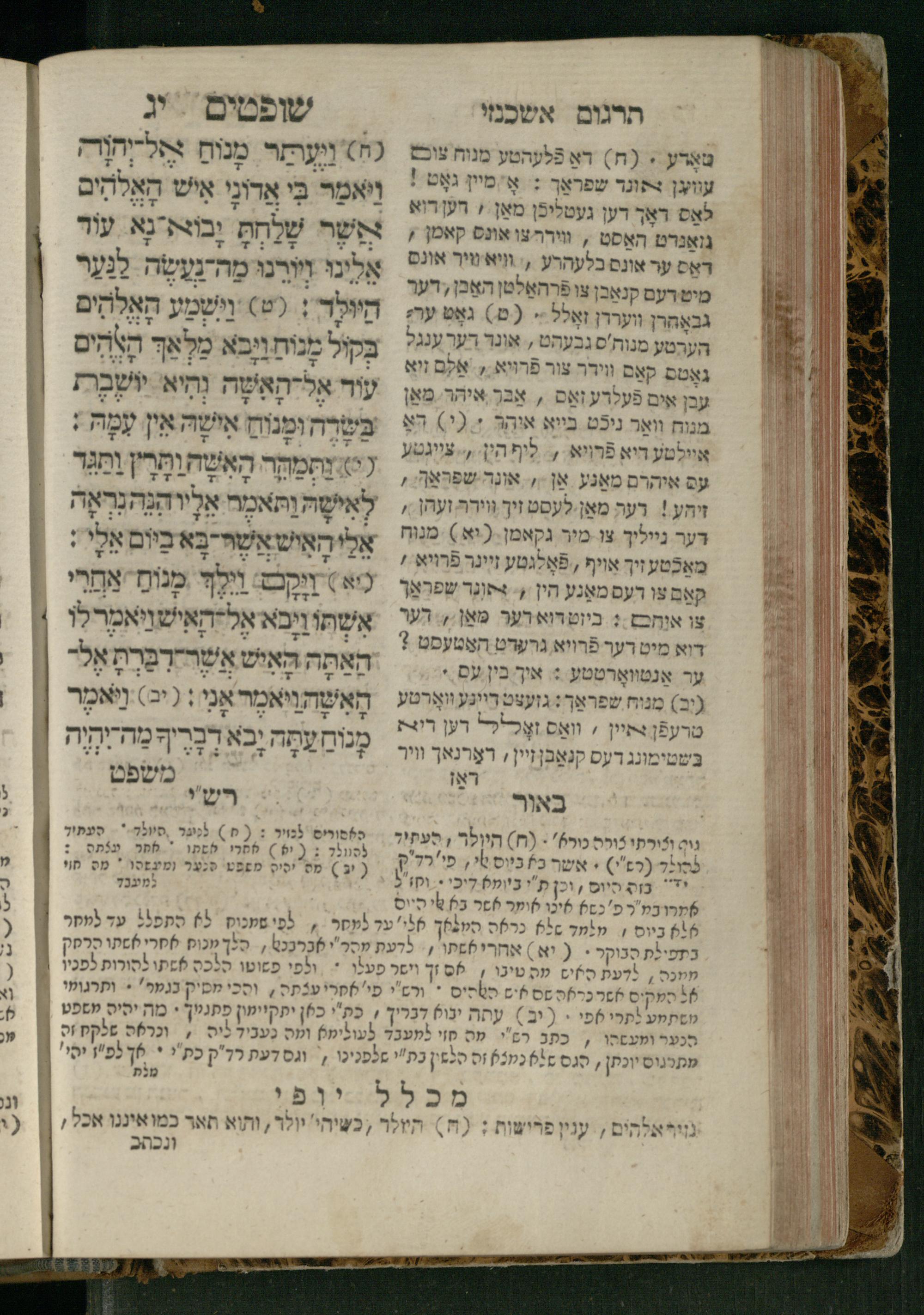 Sefer Shofṭim / ʿim targum Ashkenazi, u-veʾur, meturgam u-mevoʾar me-et R. Meʾir Oborniḳ, ṿe-hosafti bo pe. ... Rashi z.ts.l., ṿe-gam be-khol maḳom she-neʿemar be-perusho milat b.l.ʿa.z., ba be-tsedo ... perusho b.l.A. Ṿe-nilṿeh elaṿ pe. Mikhlal yofi ... ...ספר שופטים / עם תרגום אשכנזי, ובאור, מתורגם ומבואר מאת ר׳ מאיר אברניק, והוספתי בו פי׳... רש״י זצ״ל, וגם בכל מקום שנאמר בפירושו מלת בלע״ז, בא בצידו ... פירושו בל״א. ונלוה אליו פי׳ מכלל יופי ... ...