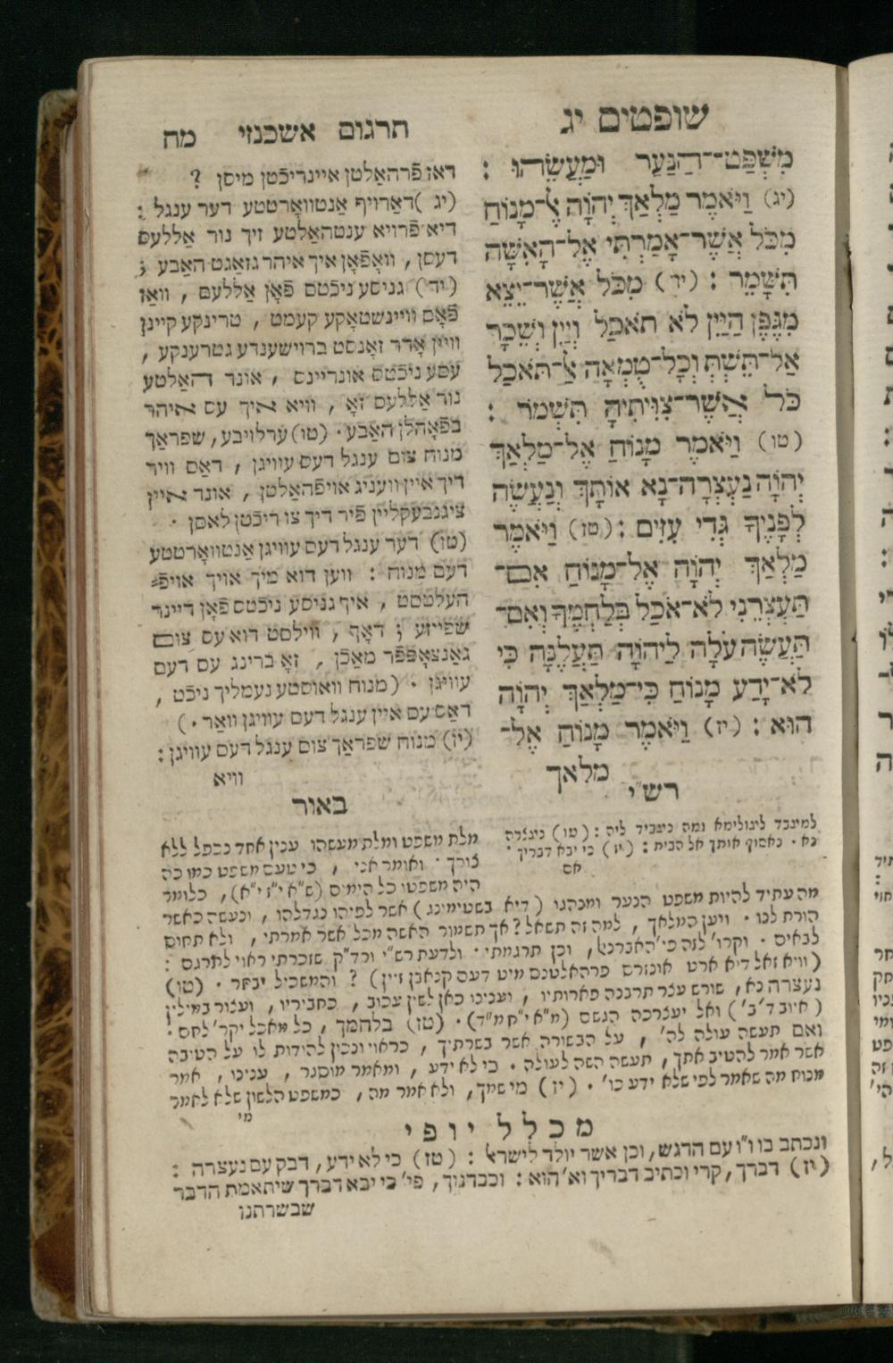 Sefer Shofṭim / ʿim targum Ashkenazi, u-veʾur, meturgam u-mevoʾar me-et R. Meʾir Oborniḳ, ṿe-hosafti bo pe. ... Rashi z.ts.l., ṿe-gam be-khol maḳom she-neʿemar be-perusho milat b.l.ʿa.z., ba be-tsedo ... perusho b.l.A. Ṿe-nilṿeh elaṿ pe. Mikhlal yofi ... ...ספר שופטים / עם תרגום אשכנזי, ובאור, מתורגם ומבואר מאת ר׳ מאיר אברניק, והוספתי בו פי׳... רש״י זצ״ל, וגם בכל מקום שנאמר בפירושו מלת בלע״ז, בא בצידו ... פירושו בל״א. ונלוה אליו פי׳ מכלל יופי ... ...