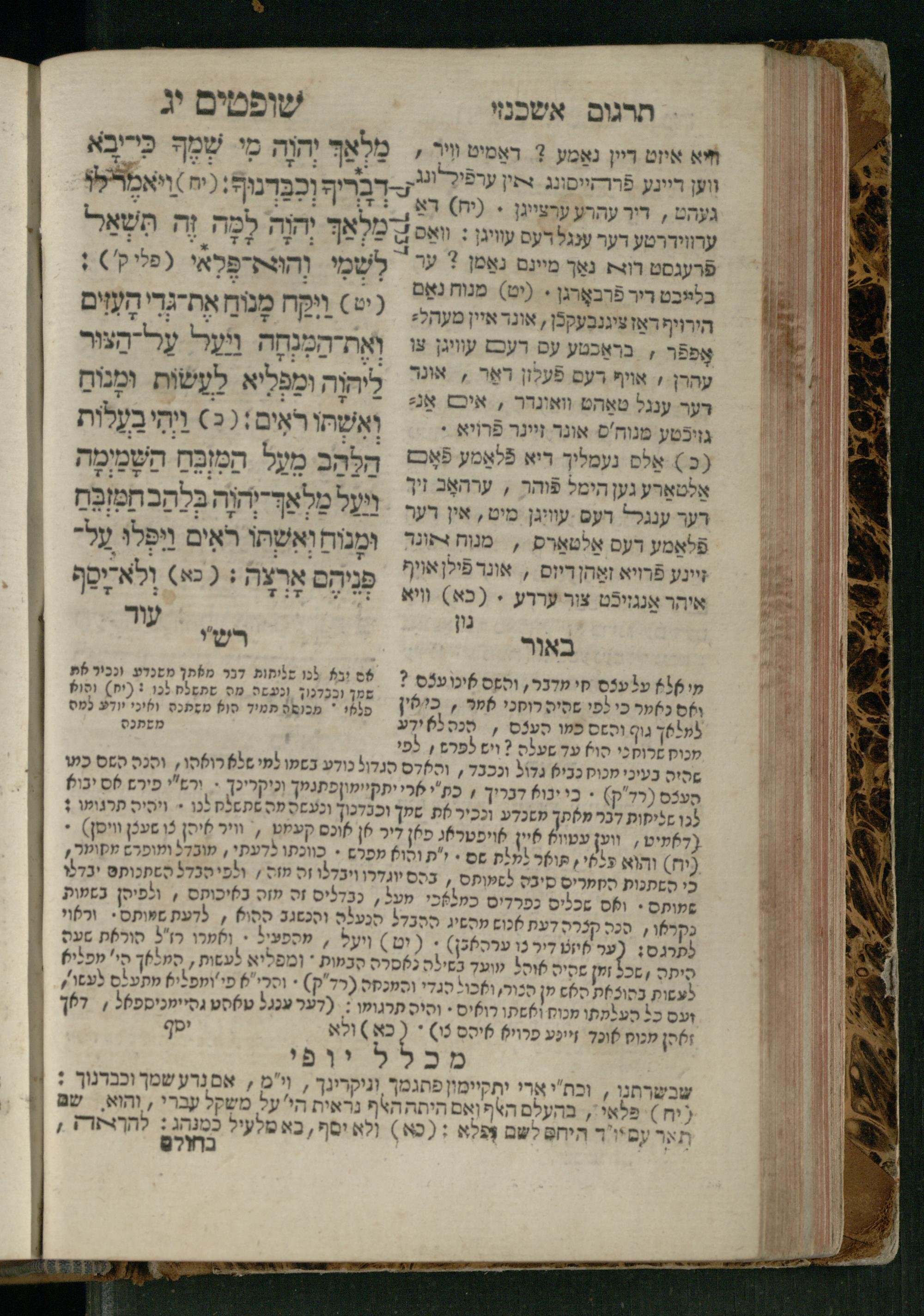 Sefer Shofṭim / ʿim targum Ashkenazi, u-veʾur, meturgam u-mevoʾar me-et R. Meʾir Oborniḳ, ṿe-hosafti bo pe. ... Rashi z.ts.l., ṿe-gam be-khol maḳom she-neʿemar be-perusho milat b.l.ʿa.z., ba be-tsedo ... perusho b.l.A. Ṿe-nilṿeh elaṿ pe. Mikhlal yofi ... ...ספר שופטים / עם תרגום אשכנזי, ובאור, מתורגם ומבואר מאת ר׳ מאיר אברניק, והוספתי בו פי׳... רש״י זצ״ל, וגם בכל מקום שנאמר בפירושו מלת בלע״ז, בא בצידו ... פירושו בל״א. ונלוה אליו פי׳ מכלל יופי ... ...