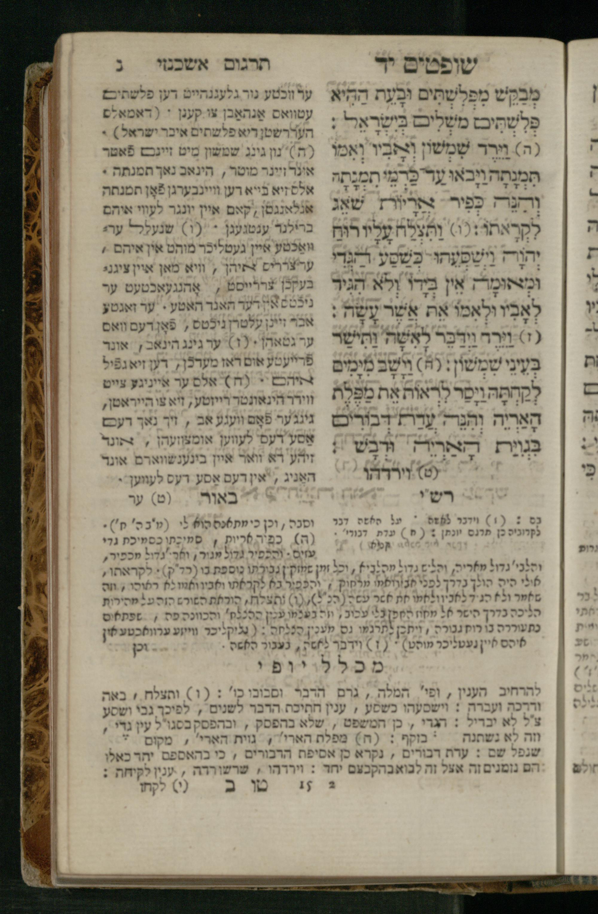 Sefer Shofṭim / ʿim targum Ashkenazi, u-veʾur, meturgam u-mevoʾar me-et R. Meʾir Oborniḳ, ṿe-hosafti bo pe. ... Rashi z.ts.l., ṿe-gam be-khol maḳom she-neʿemar be-perusho milat b.l.ʿa.z., ba be-tsedo ... perusho b.l.A. Ṿe-nilṿeh elaṿ pe. Mikhlal yofi ... ...ספר שופטים / עם תרגום אשכנזי, ובאור, מתורגם ומבואר מאת ר׳ מאיר אברניק, והוספתי בו פי׳... רש״י זצ״ל, וגם בכל מקום שנאמר בפירושו מלת בלע״ז, בא בצידו ... פירושו בל״א. ונלוה אליו פי׳ מכלל יופי ... ...