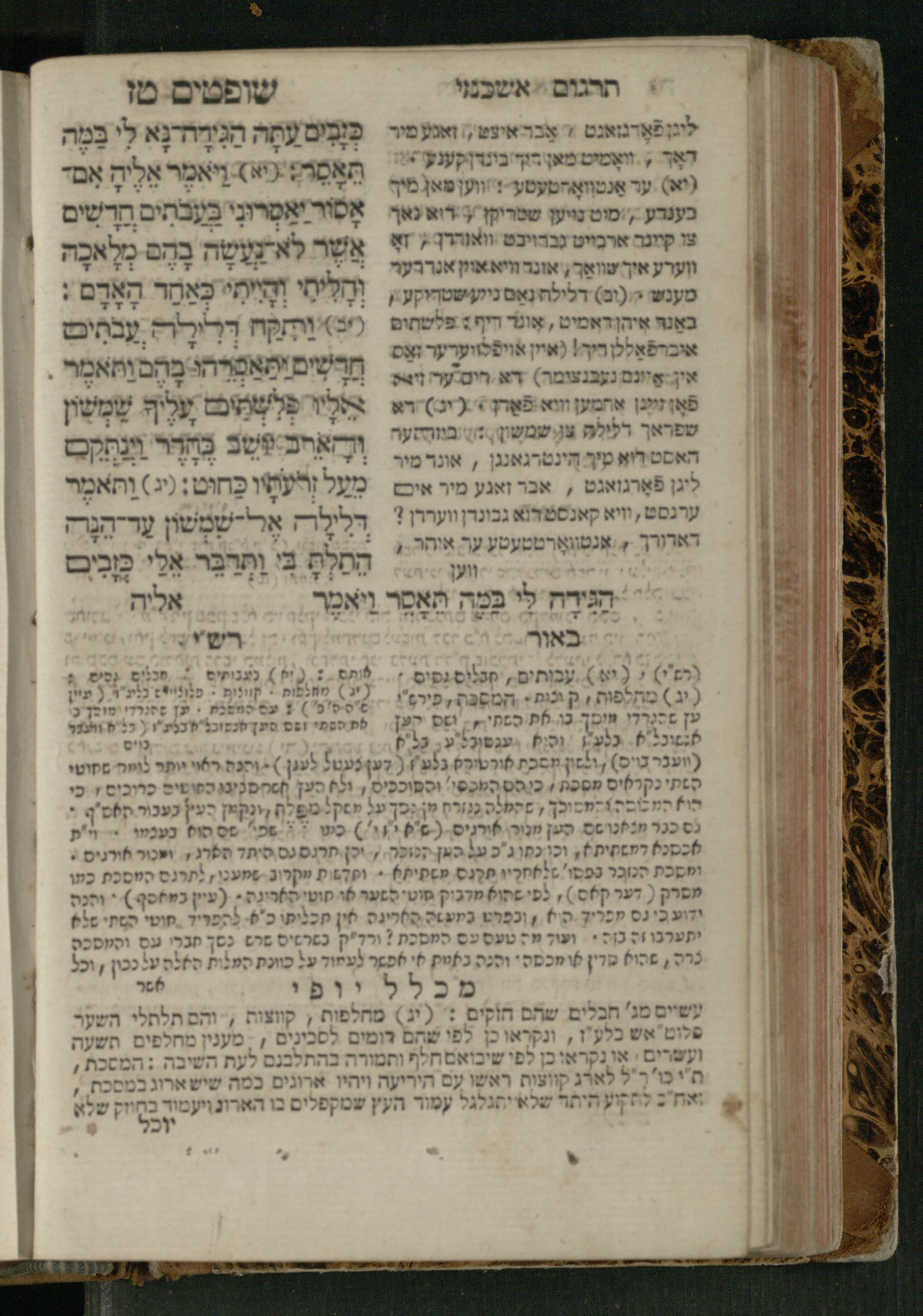 Sefer Shofṭim / ʿim targum Ashkenazi, u-veʾur, meturgam u-mevoʾar me-et R. Meʾir Oborniḳ, ṿe-hosafti bo pe. ... Rashi z.ts.l., ṿe-gam be-khol maḳom she-neʿemar be-perusho milat b.l.ʿa.z., ba be-tsedo ... perusho b.l.A. Ṿe-nilṿeh elaṿ pe. Mikhlal yofi ... ...ספר שופטים / עם תרגום אשכנזי, ובאור, מתורגם ומבואר מאת ר׳ מאיר אברניק, והוספתי בו פי׳... רש״י זצ״ל, וגם בכל מקום שנאמר בפירושו מלת בלע״ז, בא בצידו ... פירושו בל״א. ונלוה אליו פי׳ מכלל יופי ... ...