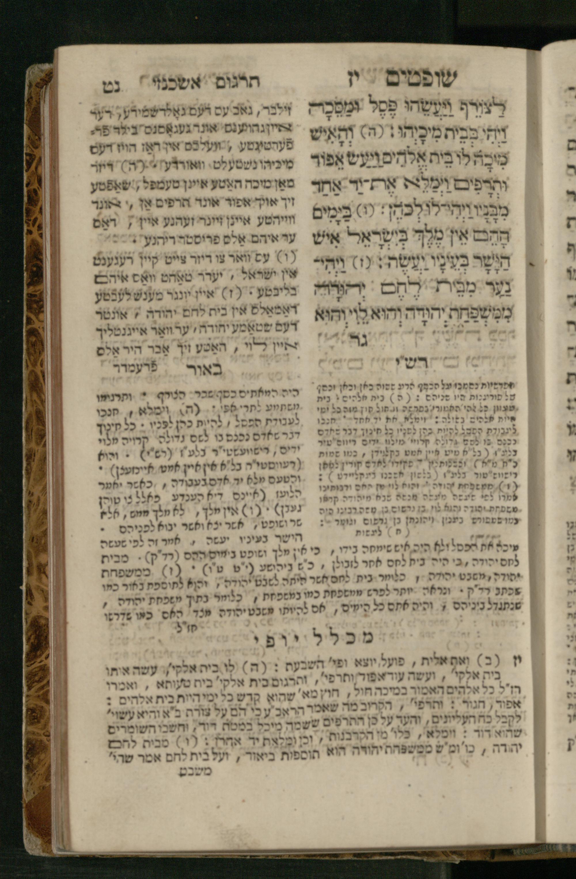 Sefer Shofṭim / ʿim targum Ashkenazi, u-veʾur, meturgam u-mevoʾar me-et R. Meʾir Oborniḳ, ṿe-hosafti bo pe. ... Rashi z.ts.l., ṿe-gam be-khol maḳom she-neʿemar be-perusho milat b.l.ʿa.z., ba be-tsedo ... perusho b.l.A. Ṿe-nilṿeh elaṿ pe. Mikhlal yofi ... ...ספר שופטים / עם תרגום אשכנזי, ובאור, מתורגם ומבואר מאת ר׳ מאיר אברניק, והוספתי בו פי׳... רש״י זצ״ל, וגם בכל מקום שנאמר בפירושו מלת בלע״ז, בא בצידו ... פירושו בל״א. ונלוה אליו פי׳ מכלל יופי ... ...