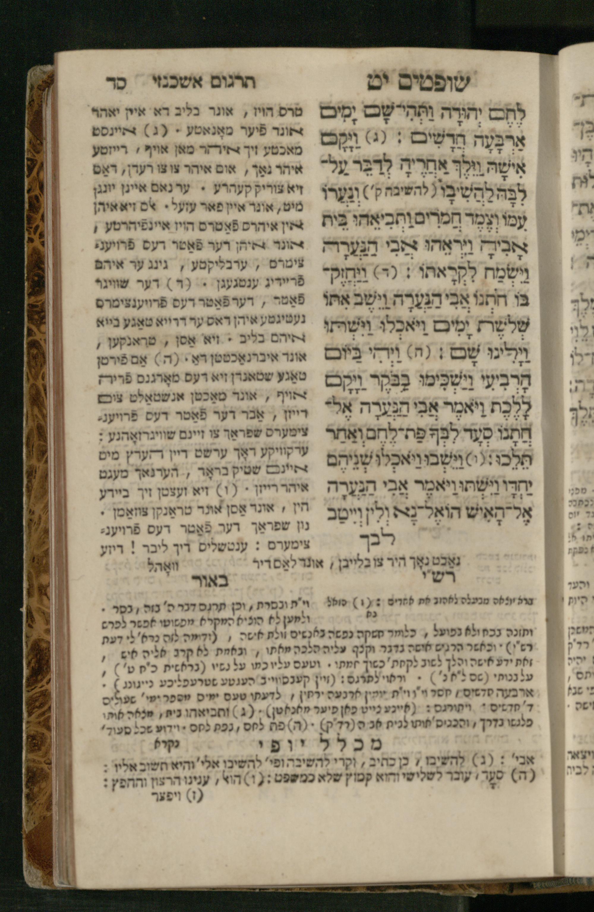 Sefer Shofṭim / ʿim targum Ashkenazi, u-veʾur, meturgam u-mevoʾar me-et R. Meʾir Oborniḳ, ṿe-hosafti bo pe. ... Rashi z.ts.l., ṿe-gam be-khol maḳom she-neʿemar be-perusho milat b.l.ʿa.z., ba be-tsedo ... perusho b.l.A. Ṿe-nilṿeh elaṿ pe. Mikhlal yofi ... ...ספר שופטים / עם תרגום אשכנזי, ובאור, מתורגם ומבואר מאת ר׳ מאיר אברניק, והוספתי בו פי׳... רש״י זצ״ל, וגם בכל מקום שנאמר בפירושו מלת בלע״ז, בא בצידו ... פירושו בל״א. ונלוה אליו פי׳ מכלל יופי ... ...
