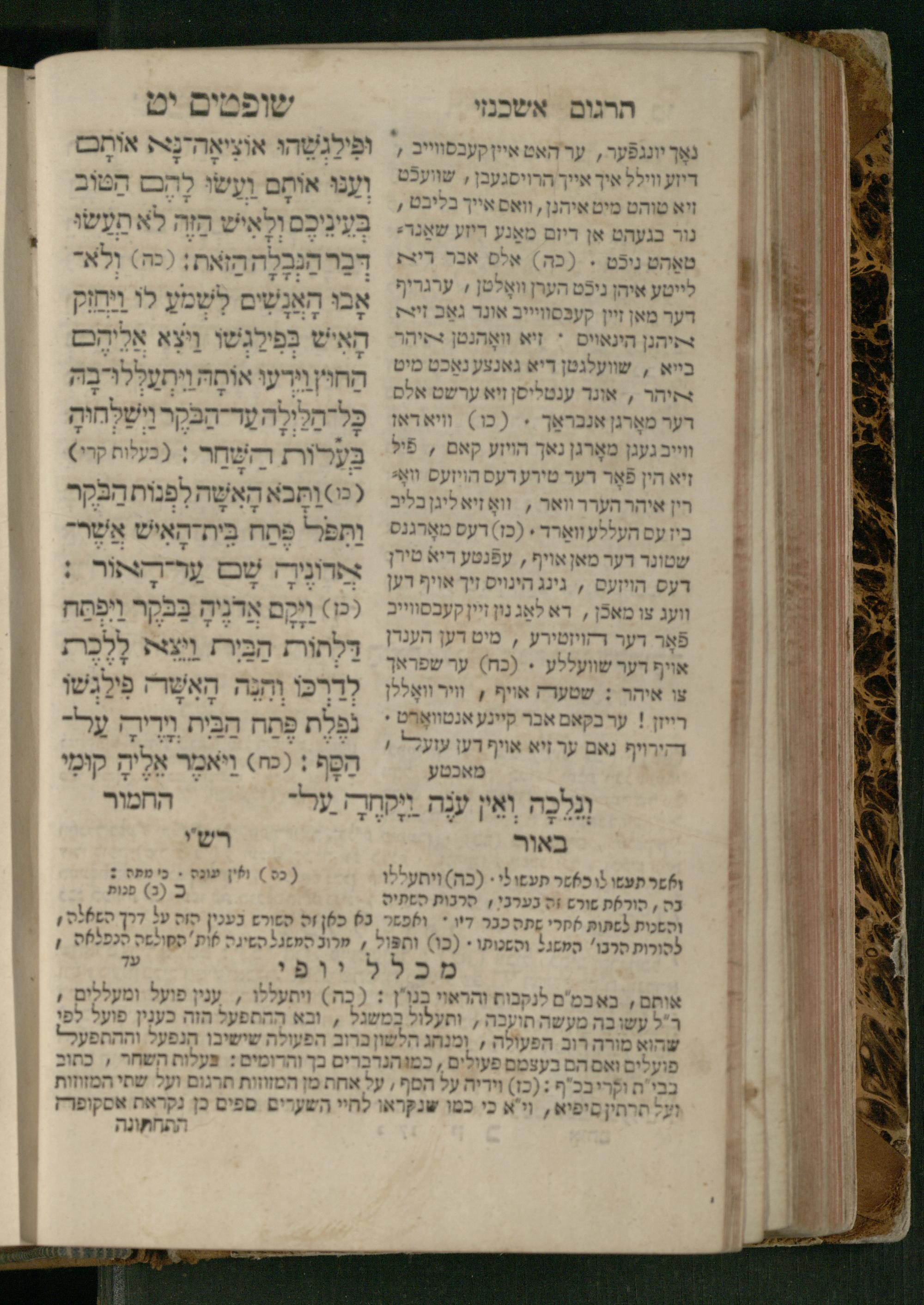 Sefer Shofṭim / ʿim targum Ashkenazi, u-veʾur, meturgam u-mevoʾar me-et R. Meʾir Oborniḳ, ṿe-hosafti bo pe. ... Rashi z.ts.l., ṿe-gam be-khol maḳom she-neʿemar be-perusho milat b.l.ʿa.z., ba be-tsedo ... perusho b.l.A. Ṿe-nilṿeh elaṿ pe. Mikhlal yofi ... ...ספר שופטים / עם תרגום אשכנזי, ובאור, מתורגם ומבואר מאת ר׳ מאיר אברניק, והוספתי בו פי׳... רש״י זצ״ל, וגם בכל מקום שנאמר בפירושו מלת בלע״ז, בא בצידו ... פירושו בל״א. ונלוה אליו פי׳ מכלל יופי ... ...