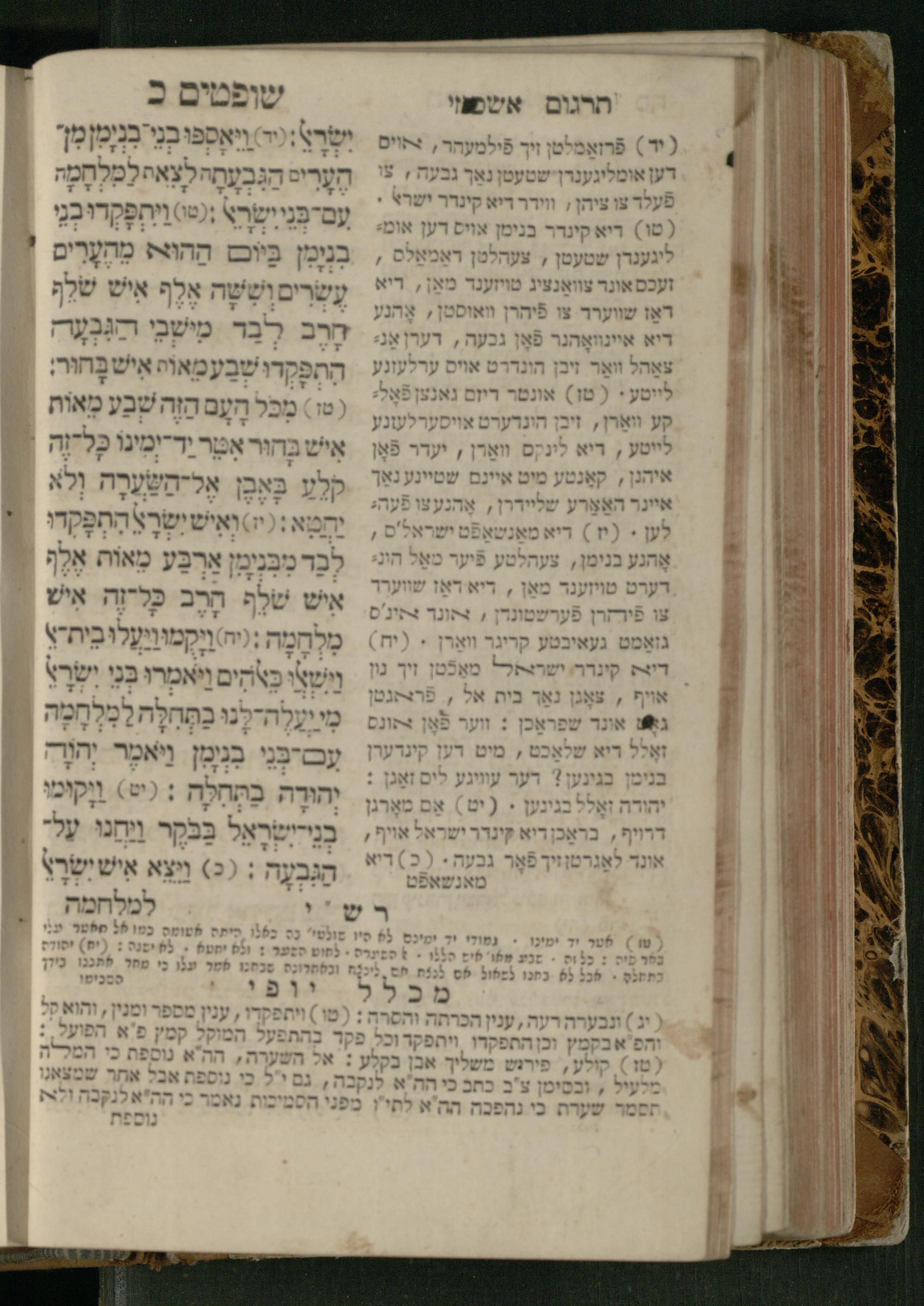 Sefer Shofṭim / ʿim targum Ashkenazi, u-veʾur, meturgam u-mevoʾar me-et R. Meʾir Oborniḳ, ṿe-hosafti bo pe. ... Rashi z.ts.l., ṿe-gam be-khol maḳom she-neʿemar be-perusho milat b.l.ʿa.z., ba be-tsedo ... perusho b.l.A. Ṿe-nilṿeh elaṿ pe. Mikhlal yofi ... ...ספר שופטים / עם תרגום אשכנזי, ובאור, מתורגם ומבואר מאת ר׳ מאיר אברניק, והוספתי בו פי׳... רש״י זצ״ל, וגם בכל מקום שנאמר בפירושו מלת בלע״ז, בא בצידו ... פירושו בל״א. ונלוה אליו פי׳ מכלל יופי ... ...