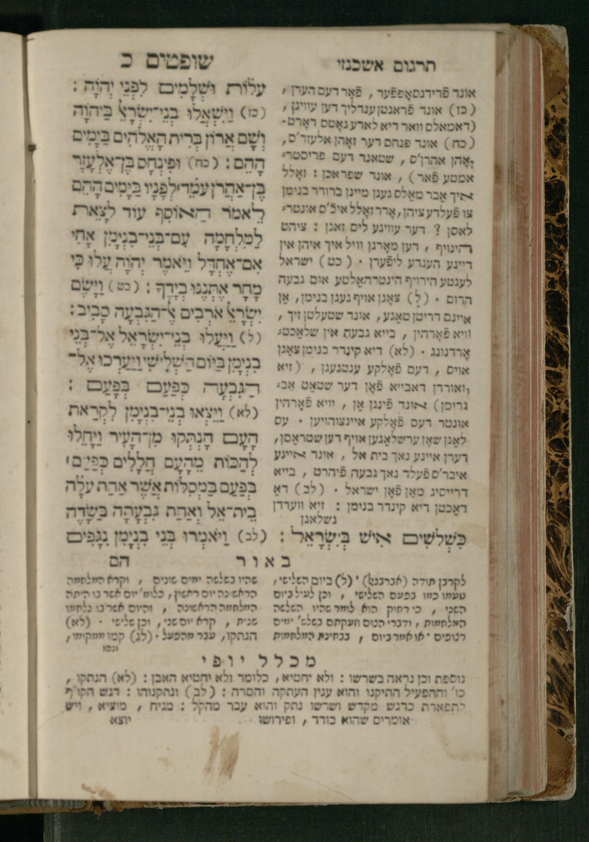 Sefer Shofṭim / ʿim targum Ashkenazi, u-veʾur, meturgam u-mevoʾar me-et R. Meʾir Oborniḳ, ṿe-hosafti bo pe. ... Rashi z.ts.l., ṿe-gam be-khol maḳom she-neʿemar be-perusho milat b.l.ʿa.z., ba be-tsedo ... perusho b.l.A. Ṿe-nilṿeh elaṿ pe. Mikhlal yofi ... ...ספר שופטים / עם תרגום אשכנזי, ובאור, מתורגם ומבואר מאת ר׳ מאיר אברניק, והוספתי בו פי׳... רש״י זצ״ל, וגם בכל מקום שנאמר בפירושו מלת בלע״ז, בא בצידו ... פירושו בל״א. ונלוה אליו פי׳ מכלל יופי ... ...