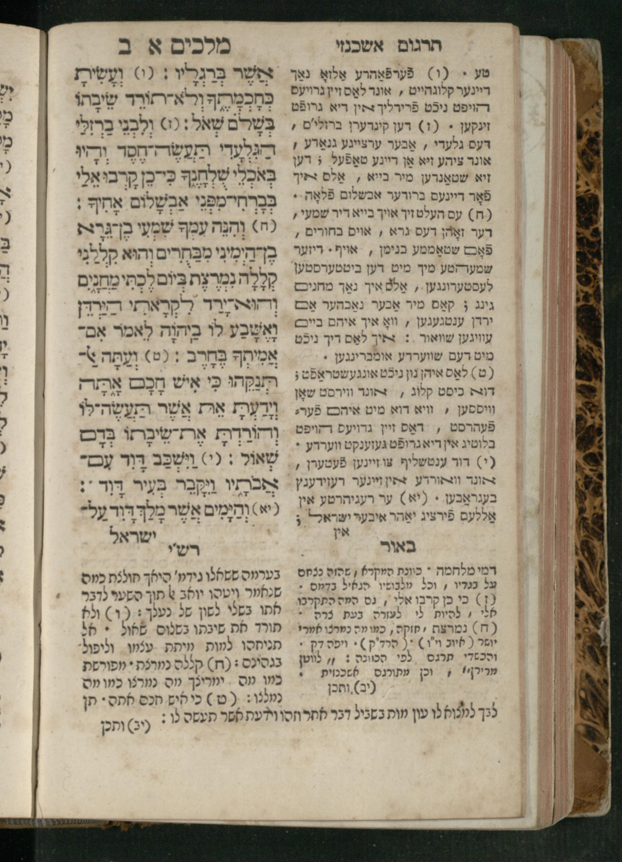 Sefer Melakhim 1 / ʿim targum Ashkenazi u-veʾur [meturgam u-mevoʾar ʿal-yede R. Meʾir Oborniḳ], ṿe-hosafti bo pe. ... Rashi z.ts.l. ... Ṿe-nilṿeh elaṿ pe. Mikhlal yofi ...ספר מלכים א / עם תרגום אשכנזי ובאור [מתורגם ומבואר על ידי ר׳ מאיר אברניק], והוספתי בו פי׳... רש״י זצ״ל. ... ונלוה אליו פי׳ מכלל יופי ...