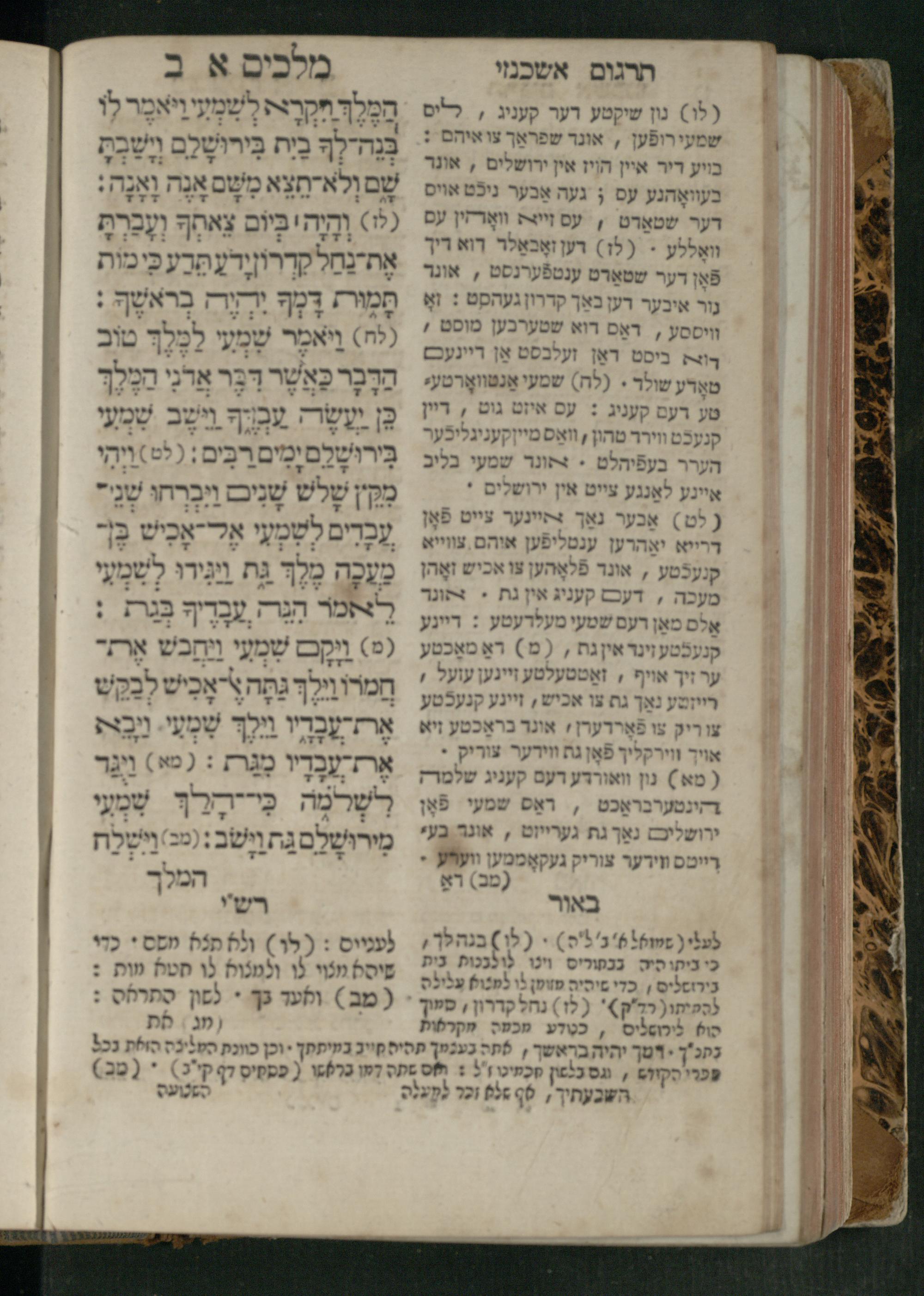 Sefer Melakhim 1 / ʿim targum Ashkenazi u-veʾur [meturgam u-mevoʾar ʿal-yede R. Meʾir Oborniḳ], ṿe-hosafti bo pe. ... Rashi z.ts.l. ... Ṿe-nilṿeh elaṿ pe. Mikhlal yofi ...ספר מלכים א / עם תרגום אשכנזי ובאור [מתורגם ומבואר על ידי ר׳ מאיר אברניק], והוספתי בו פי׳... רש״י זצ״ל. ... ונלוה אליו פי׳ מכלל יופי ...