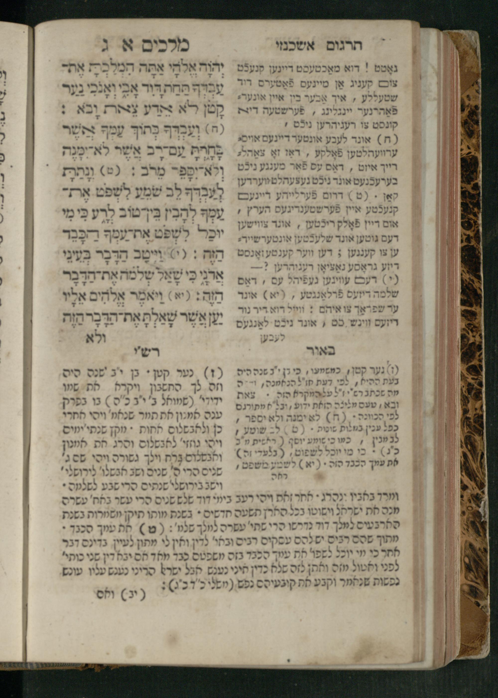 Sefer Melakhim 1 / ʿim targum Ashkenazi u-veʾur [meturgam u-mevoʾar ʿal-yede R. Meʾir Oborniḳ], ṿe-hosafti bo pe. ... Rashi z.ts.l. ... Ṿe-nilṿeh elaṿ pe. Mikhlal yofi ...ספר מלכים א / עם תרגום אשכנזי ובאור [מתורגם ומבואר על ידי ר׳ מאיר אברניק], והוספתי בו פי׳... רש״י זצ״ל. ... ונלוה אליו פי׳ מכלל יופי ...