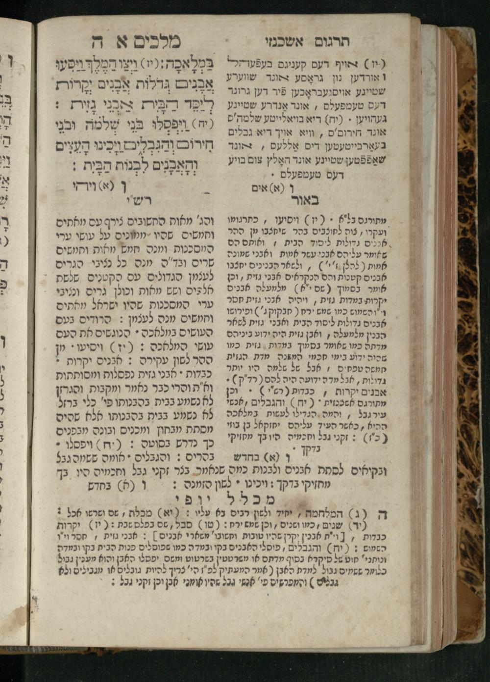 Sefer Melakhim 1 / ʿim targum Ashkenazi u-veʾur [meturgam u-mevoʾar ʿal-yede R. Meʾir Oborniḳ], ṿe-hosafti bo pe. ... Rashi z.ts.l. ... Ṿe-nilṿeh elaṿ pe. Mikhlal yofi ...ספר מלכים א / עם תרגום אשכנזי ובאור [מתורגם ומבואר על ידי ר׳ מאיר אברניק], והוספתי בו פי׳... רש״י זצ״ל. ... ונלוה אליו פי׳ מכלל יופי ...