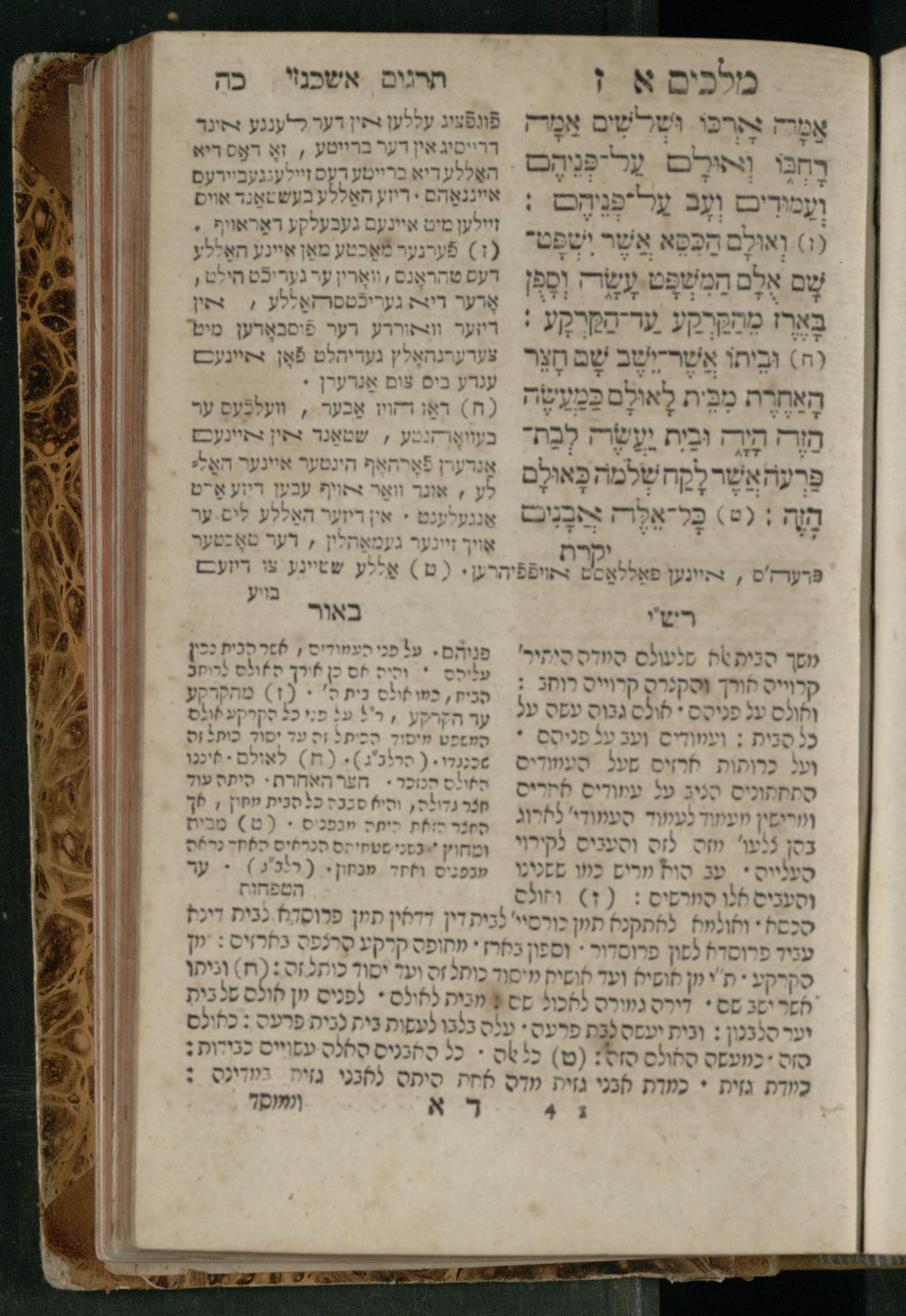 Sefer Melakhim 1 / ʿim targum Ashkenazi u-veʾur [meturgam u-mevoʾar ʿal-yede R. Meʾir Oborniḳ], ṿe-hosafti bo pe. ... Rashi z.ts.l. ... Ṿe-nilṿeh elaṿ pe. Mikhlal yofi ...ספר מלכים א / עם תרגום אשכנזי ובאור [מתורגם ומבואר על ידי ר׳ מאיר אברניק], והוספתי בו פי׳... רש״י זצ״ל. ... ונלוה אליו פי׳ מכלל יופי ...