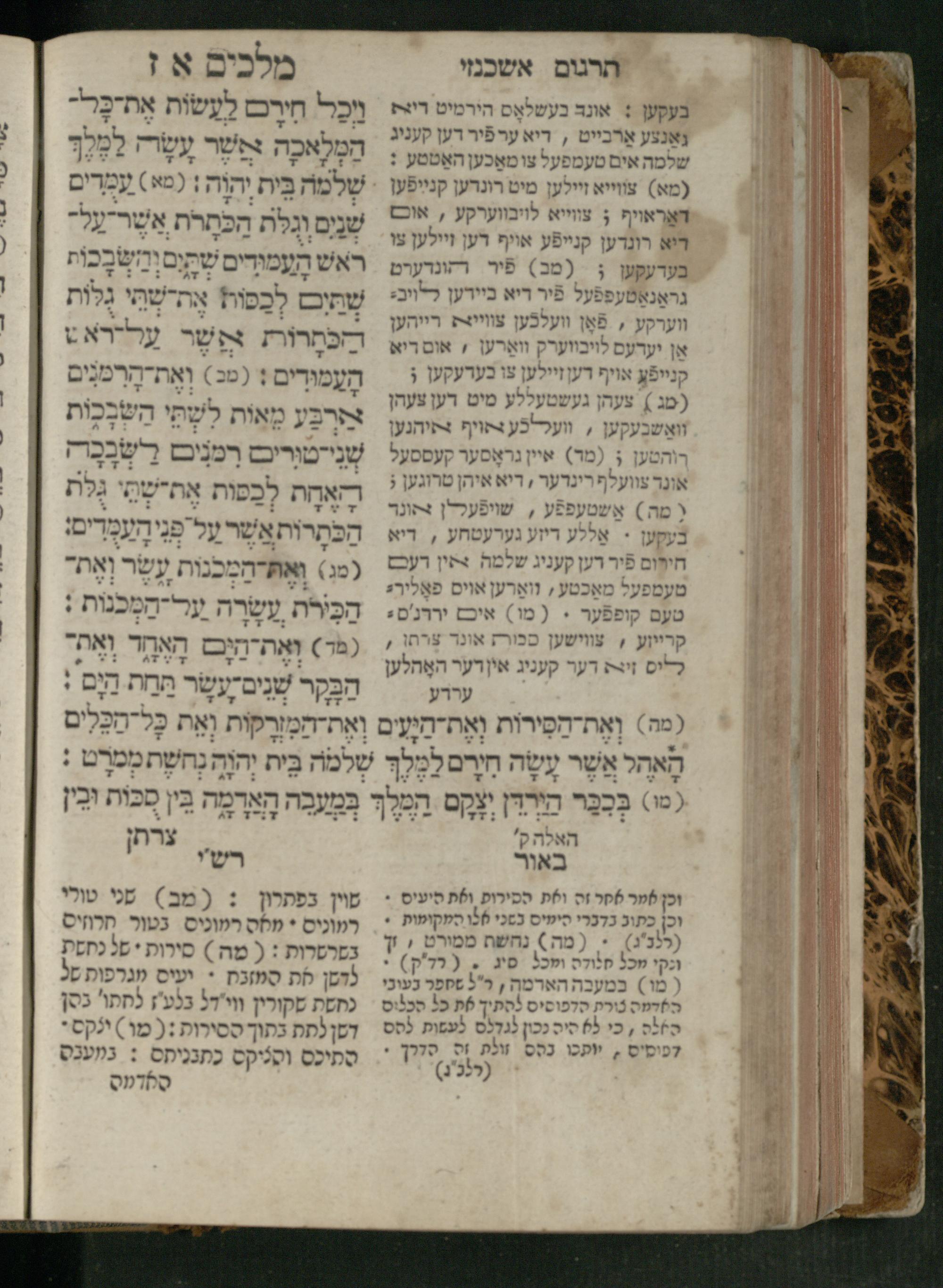 Sefer Melakhim 1 / ʿim targum Ashkenazi u-veʾur [meturgam u-mevoʾar ʿal-yede R. Meʾir Oborniḳ], ṿe-hosafti bo pe. ... Rashi z.ts.l. ... Ṿe-nilṿeh elaṿ pe. Mikhlal yofi ...ספר מלכים א / עם תרגום אשכנזי ובאור [מתורגם ומבואר על ידי ר׳ מאיר אברניק], והוספתי בו פי׳... רש״י זצ״ל. ... ונלוה אליו פי׳ מכלל יופי ...