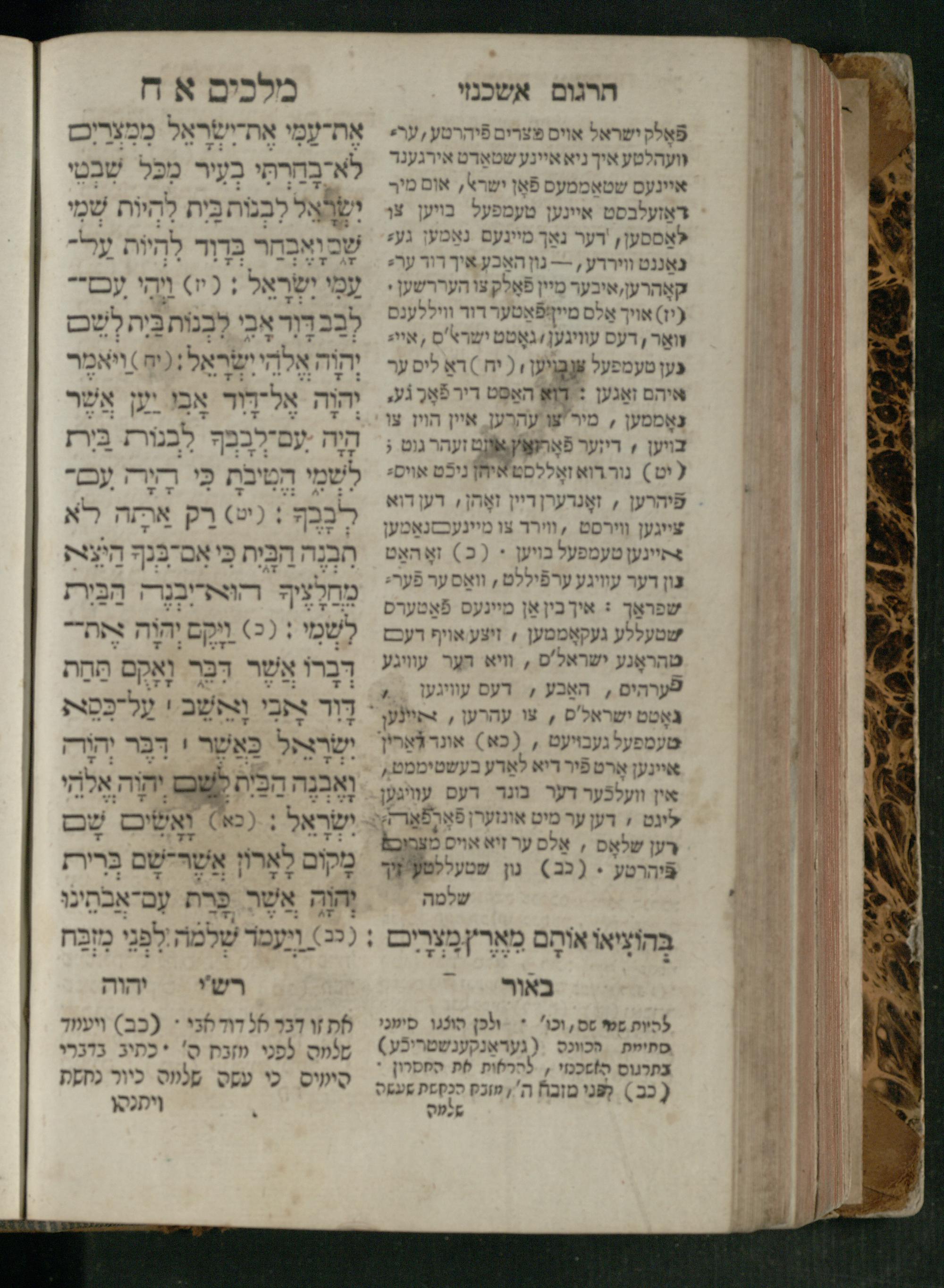 Sefer Melakhim 1 / ʿim targum Ashkenazi u-veʾur [meturgam u-mevoʾar ʿal-yede R. Meʾir Oborniḳ], ṿe-hosafti bo pe. ... Rashi z.ts.l. ... Ṿe-nilṿeh elaṿ pe. Mikhlal yofi ...ספר מלכים א / עם תרגום אשכנזי ובאור [מתורגם ומבואר על ידי ר׳ מאיר אברניק], והוספתי בו פי׳... רש״י זצ״ל. ... ונלוה אליו פי׳ מכלל יופי ...