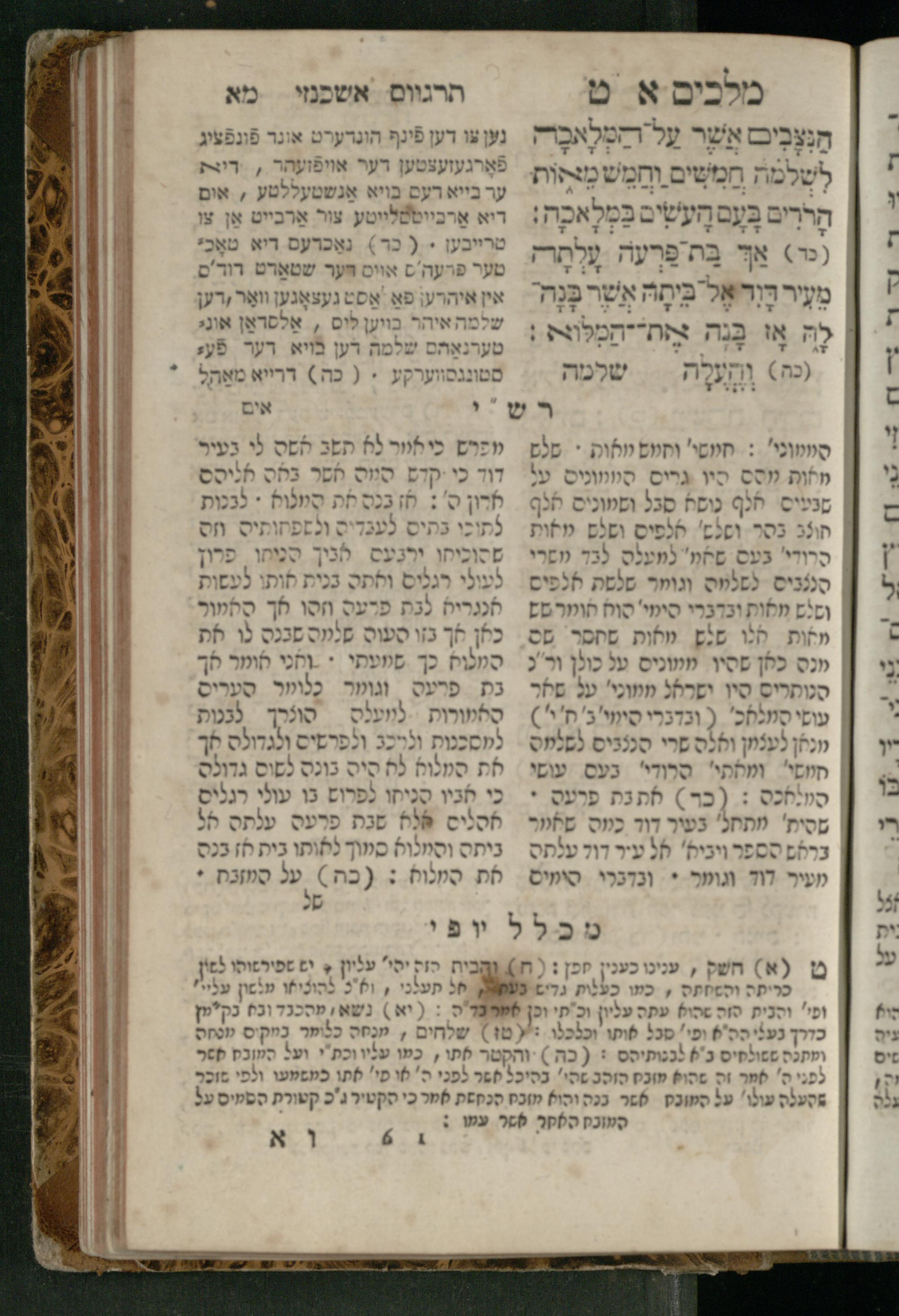 Sefer Melakhim 1 / ʿim targum Ashkenazi u-veʾur [meturgam u-mevoʾar ʿal-yede R. Meʾir Oborniḳ], ṿe-hosafti bo pe. ... Rashi z.ts.l. ... Ṿe-nilṿeh elaṿ pe. Mikhlal yofi ...ספר מלכים א / עם תרגום אשכנזי ובאור [מתורגם ומבואר על ידי ר׳ מאיר אברניק], והוספתי בו פי׳... רש״י זצ״ל. ... ונלוה אליו פי׳ מכלל יופי ...