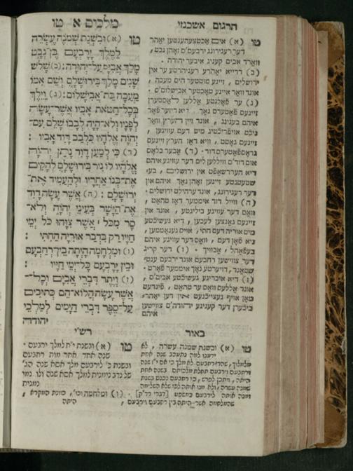Sefer Melakhim 1 / ʿim targum Ashkenazi u-veʾur [meturgam u-mevoʾar ʿal-yede R. Meʾir Oborniḳ], ṿe-hosafti bo pe. ... Rashi z.ts.l. ... Ṿe-nilṿeh elaṿ pe. Mikhlal yofi ...ספר מלכים א / עם תרגום אשכנזי ובאור [מתורגם ומבואר על ידי ר׳ מאיר אברניק], והוספתי בו פי׳... רש״י זצ״ל. ... ונלוה אליו פי׳ מכלל יופי ...