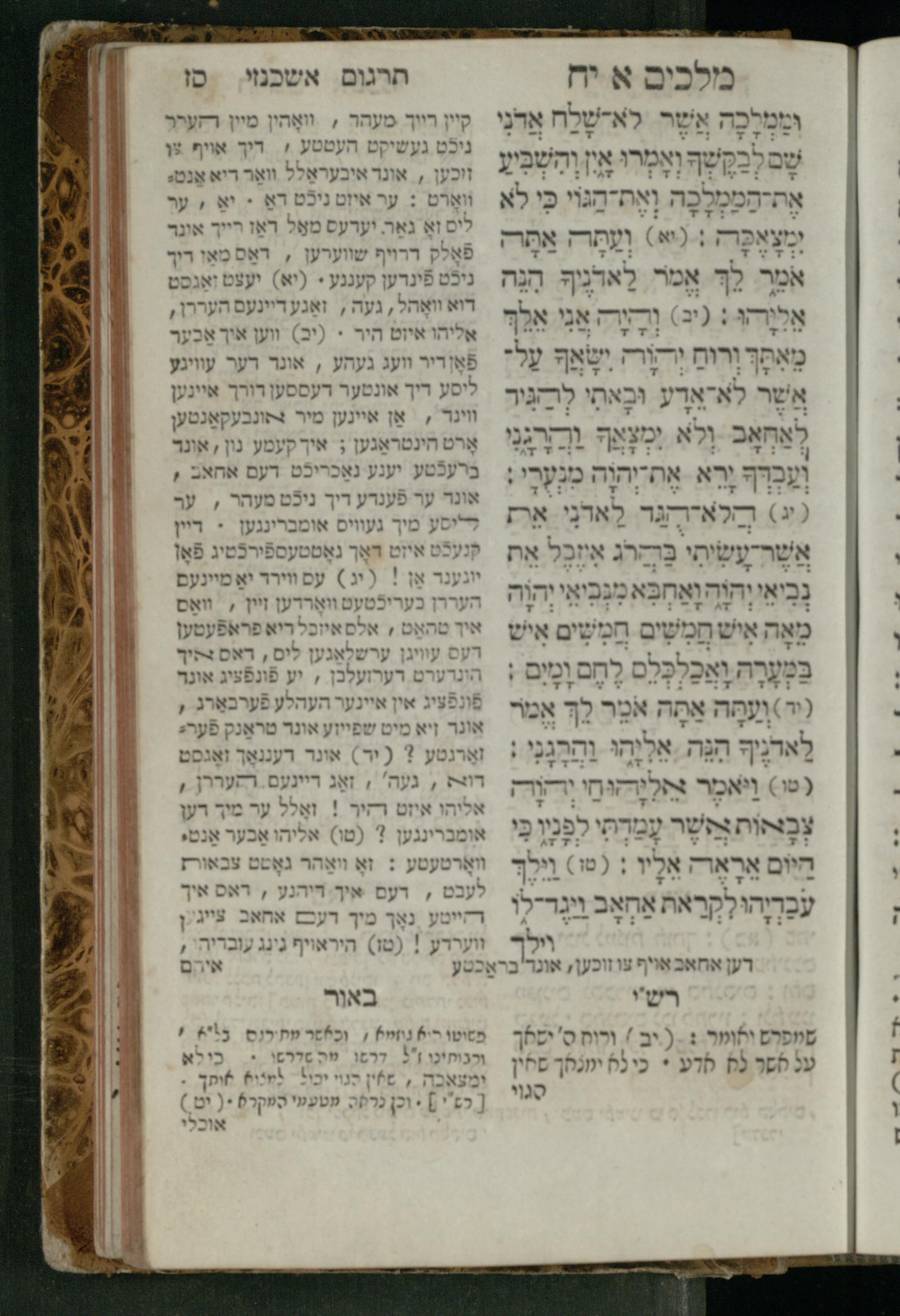 Sefer Melakhim 1 / ʿim targum Ashkenazi u-veʾur [meturgam u-mevoʾar ʿal-yede R. Meʾir Oborniḳ], ṿe-hosafti bo pe. ... Rashi z.ts.l. ... Ṿe-nilṿeh elaṿ pe. Mikhlal yofi ...ספר מלכים א / עם תרגום אשכנזי ובאור [מתורגם ומבואר על ידי ר׳ מאיר אברניק], והוספתי בו פי׳... רש״י זצ״ל. ... ונלוה אליו פי׳ מכלל יופי ...
