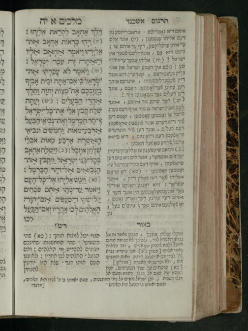 Sefer Melakhim 1 / ʿim targum Ashkenazi u-veʾur [meturgam u-mevoʾar ʿal-yede R. Meʾir Oborniḳ], ṿe-hosafti bo pe. ... Rashi z.ts.l. ... Ṿe-nilṿeh elaṿ pe. Mikhlal yofi ...ספר מלכים א / עם תרגום אשכנזי ובאור [מתורגם ומבואר על ידי ר׳ מאיר אברניק], והוספתי בו פי׳... רש״י זצ״ל. ... ונלוה אליו פי׳ מכלל יופי ...