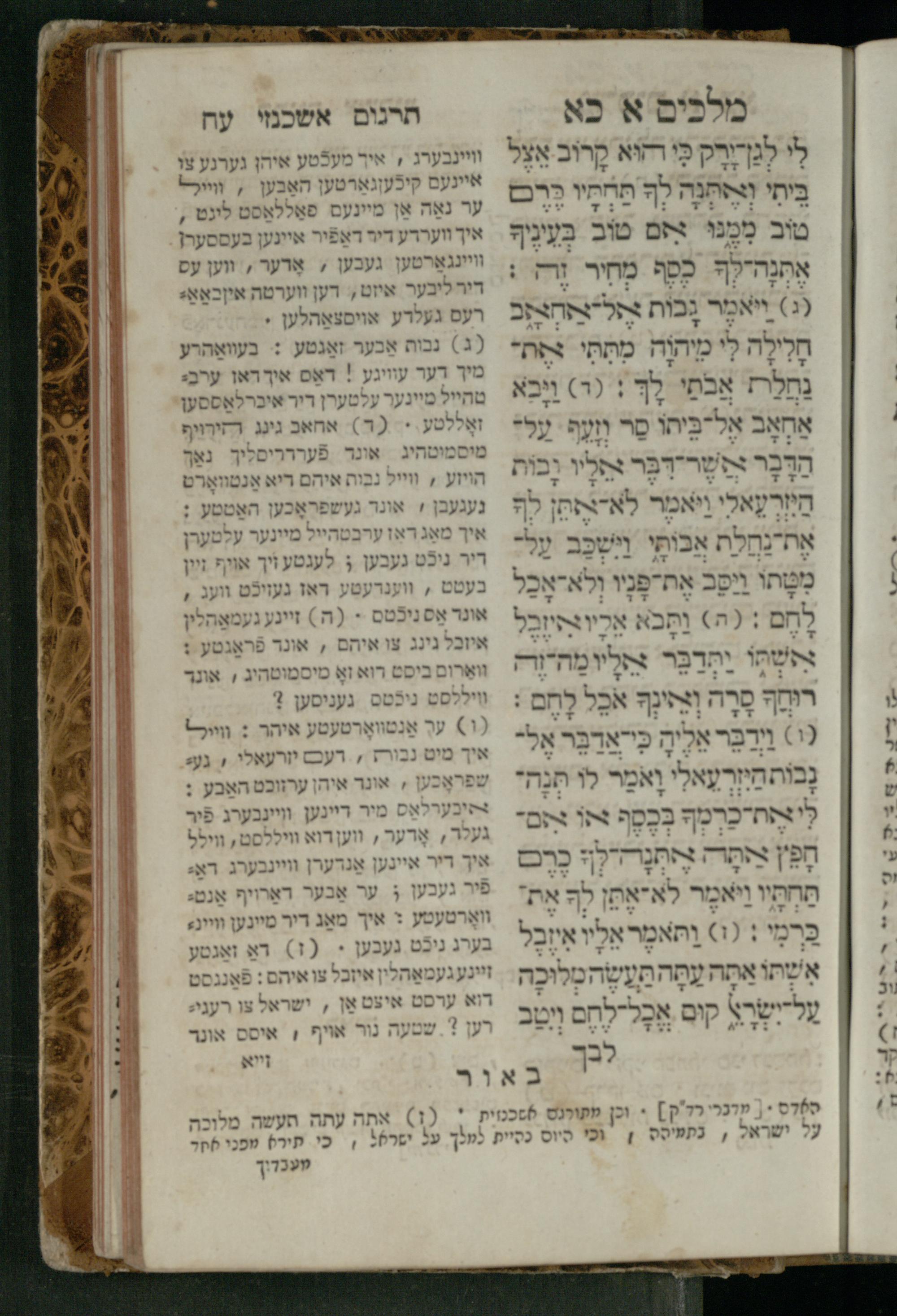 Sefer Melakhim 1 / ʿim targum Ashkenazi u-veʾur [meturgam u-mevoʾar ʿal-yede R. Meʾir Oborniḳ], ṿe-hosafti bo pe. ... Rashi z.ts.l. ... Ṿe-nilṿeh elaṿ pe. Mikhlal yofi ...ספר מלכים א / עם תרגום אשכנזי ובאור [מתורגם ומבואר על ידי ר׳ מאיר אברניק], והוספתי בו פי׳... רש״י זצ״ל. ... ונלוה אליו פי׳ מכלל יופי ...