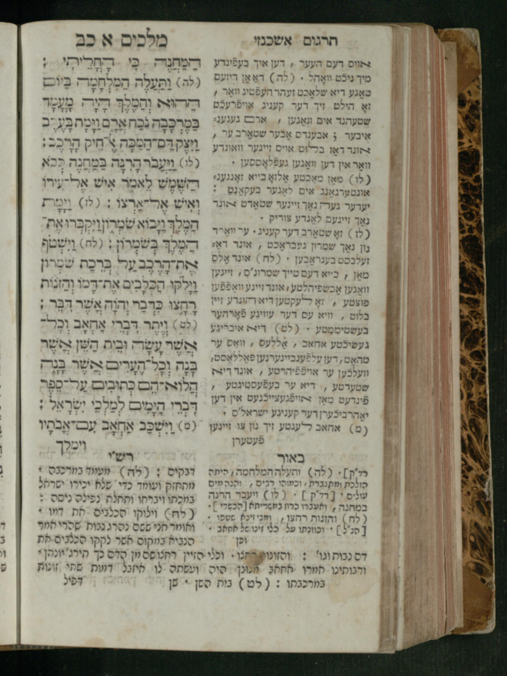 Sefer Melakhim 1 / ʿim targum Ashkenazi u-veʾur [meturgam u-mevoʾar ʿal-yede R. Meʾir Oborniḳ], ṿe-hosafti bo pe. ... Rashi z.ts.l. ... Ṿe-nilṿeh elaṿ pe. Mikhlal yofi ...ספר מלכים א / עם תרגום אשכנזי ובאור [מתורגם ומבואר על ידי ר׳ מאיר אברניק], והוספתי בו פי׳... רש״י זצ״ל. ... ונלוה אליו פי׳ מכלל יופי ...