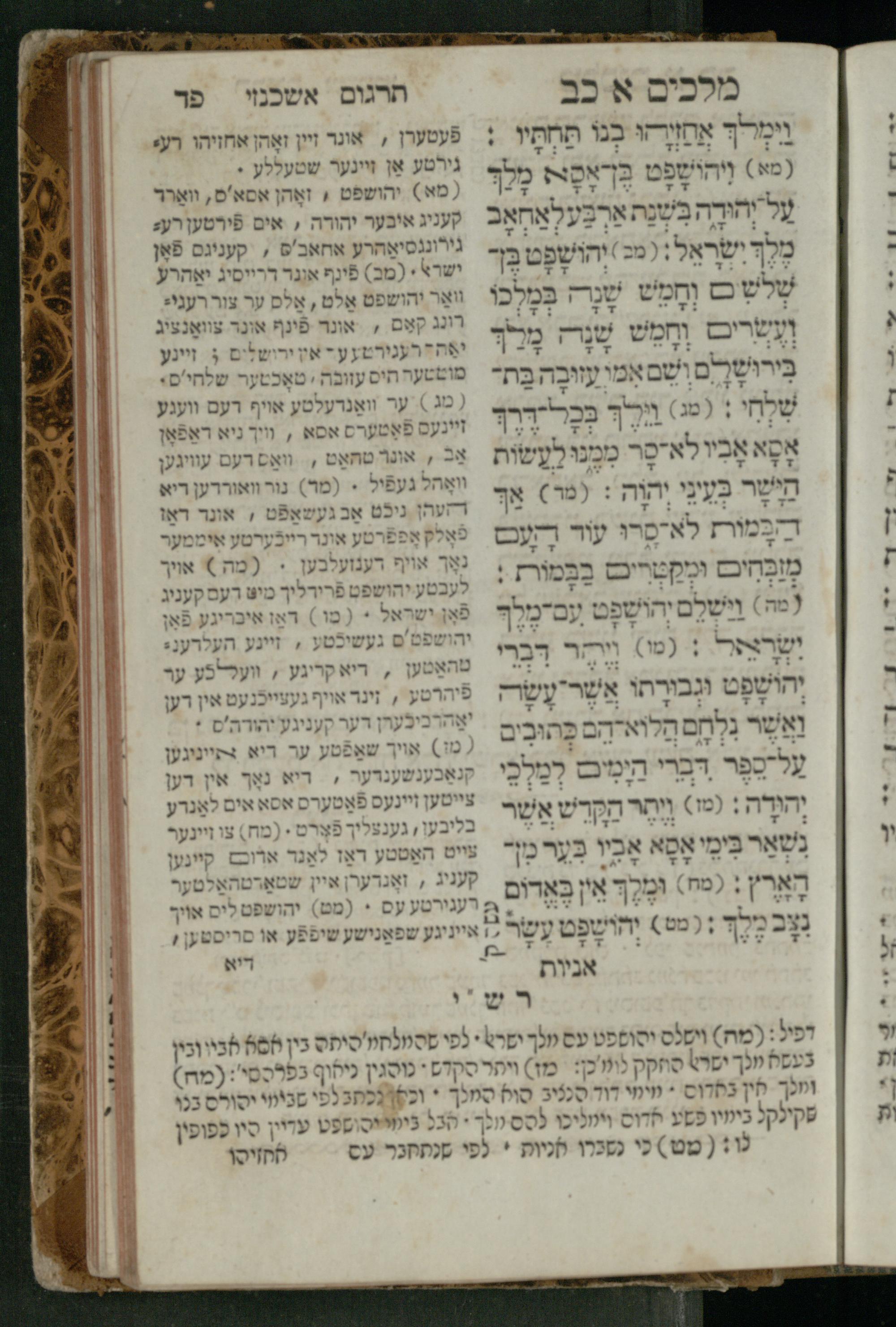 Sefer Melakhim 1 / ʿim targum Ashkenazi u-veʾur [meturgam u-mevoʾar ʿal-yede R. Meʾir Oborniḳ], ṿe-hosafti bo pe. ... Rashi z.ts.l. ... Ṿe-nilṿeh elaṿ pe. Mikhlal yofi ...ספר מלכים א / עם תרגום אשכנזי ובאור [מתורגם ומבואר על ידי ר׳ מאיר אברניק], והוספתי בו פי׳... רש״י זצ״ל. ... ונלוה אליו פי׳ מכלל יופי ...