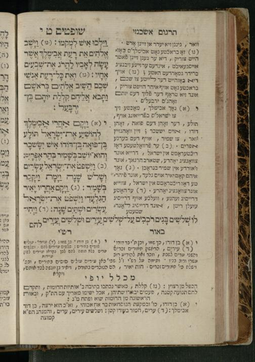 Sefer Shofṭim / ʿim targum Ashkenazi, u-veʾur, meturgam u-mevoʾar me-et R. Meʾir Oborniḳ, ṿe-hosafti bo pe. ... Rashi z.ts.l., ṿe-gam be-khol maḳom she-neʿemar be-perusho milat b.l.ʿa.z., ba be-tsedo ... perusho b.l.A. Ṿe-nilṿeh elaṿ pe. Mikhlal yofi ... ...ספר שופטים / עם תרגום אשכנזי, ובאור, מתורגם ומבואר מאת ר׳ מאיר אברניק, והוספתי בו פי׳... רש״י זצ״ל, וגם בכל מקום שנאמר בפירושו מלת בלע״ז, בא בצידו ... פירושו בל״א. ונלוה אליו פי׳ מכלל יופי ... ...