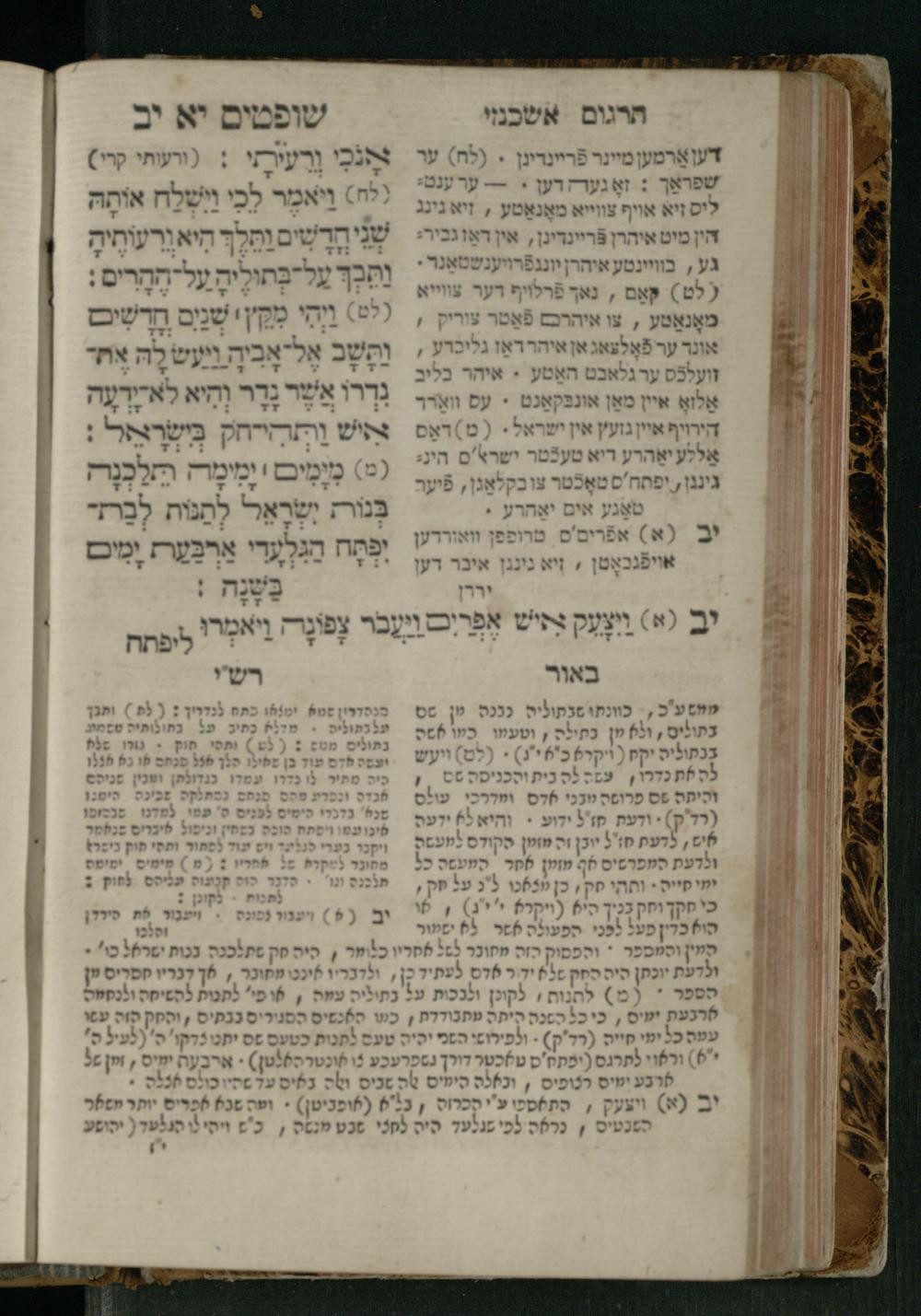 Sefer Shofṭim / ʿim targum Ashkenazi, u-veʾur, meturgam u-mevoʾar me-et R. Meʾir Oborniḳ, ṿe-hosafti bo pe. ... Rashi z.ts.l., ṿe-gam be-khol maḳom she-neʿemar be-perusho milat b.l.ʿa.z., ba be-tsedo ... perusho b.l.A. Ṿe-nilṿeh elaṿ pe. Mikhlal yofi ... ...ספר שופטים / עם תרגום אשכנזי, ובאור, מתורגם ומבואר מאת ר׳ מאיר אברניק, והוספתי בו פי׳... רש״י זצ״ל, וגם בכל מקום שנאמר בפירושו מלת בלע״ז, בא בצידו ... פירושו בל״א. ונלוה אליו פי׳ מכלל יופי ... ...