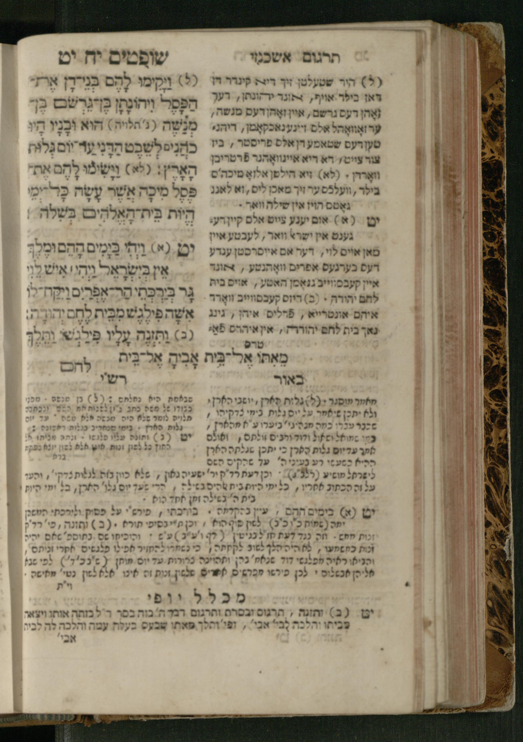 Sefer Shofṭim / ʿim targum Ashkenazi, u-veʾur, meturgam u-mevoʾar me-et R. Meʾir Oborniḳ, ṿe-hosafti bo pe. ... Rashi z.ts.l., ṿe-gam be-khol maḳom she-neʿemar be-perusho milat b.l.ʿa.z., ba be-tsedo ... perusho b.l.A. Ṿe-nilṿeh elaṿ pe. Mikhlal yofi ... ...ספר שופטים / עם תרגום אשכנזי, ובאור, מתורגם ומבואר מאת ר׳ מאיר אברניק, והוספתי בו פי׳... רש״י זצ״ל, וגם בכל מקום שנאמר בפירושו מלת בלע״ז, בא בצידו ... פירושו בל״א. ונלוה אליו פי׳ מכלל יופי ... ...