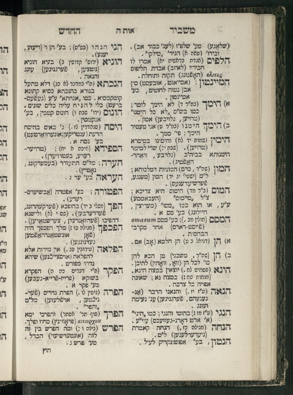 Sefer ha-Miluʾim : o Mashbir he-ḥadash : bo asafti u-mileti otsar milim ha-nimtsaʾim be-divre rabotenu ... / hakhinoti Yosef b.mo.h. Binyamin Dov Sheinhaḳספר המילואים : או משביר החדש : בו אספתי אוצר מילים הנמצאים בדברי רבותינו ... / הכינותי יוסף במו״ה בנימין דוב שיינהאק