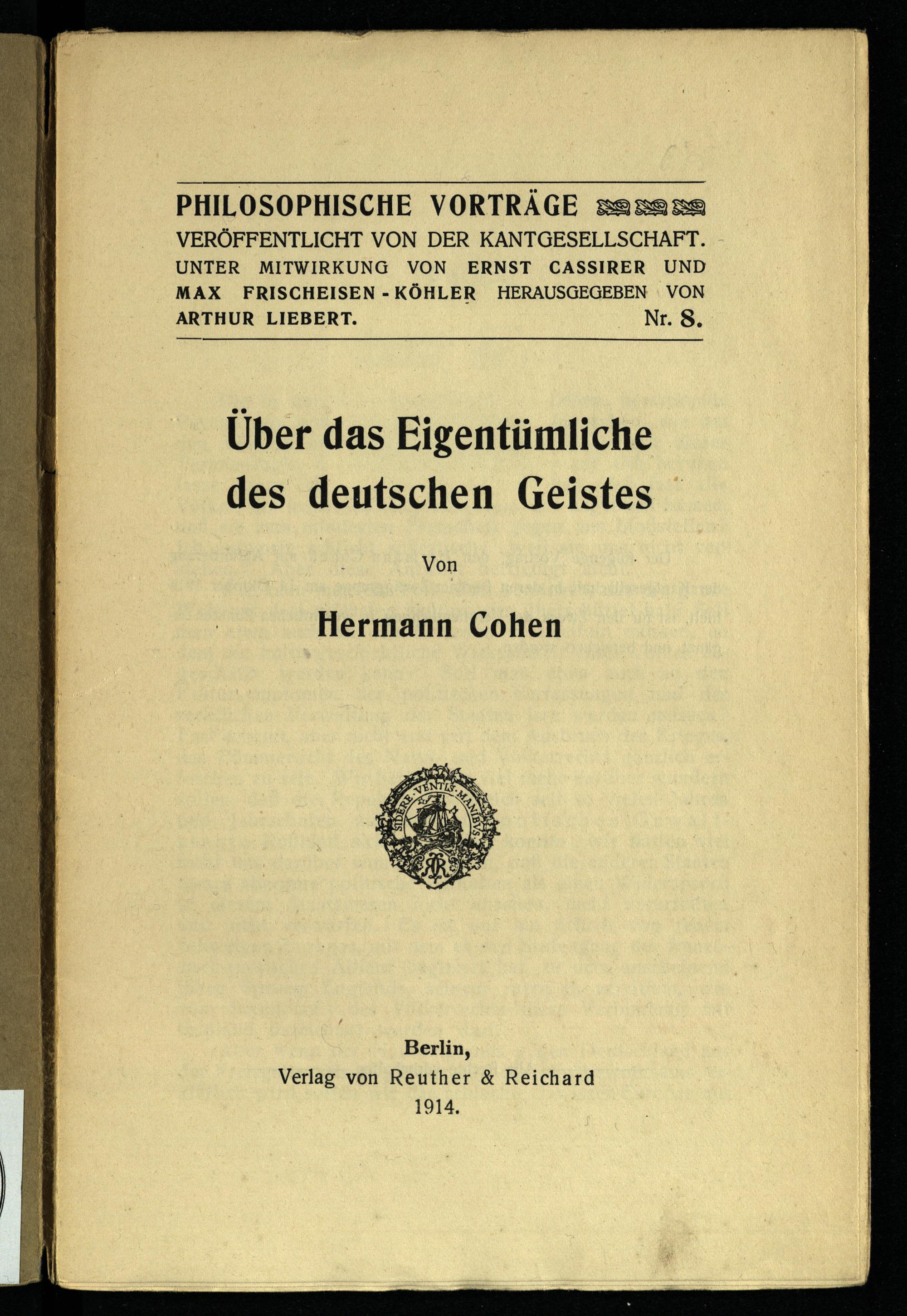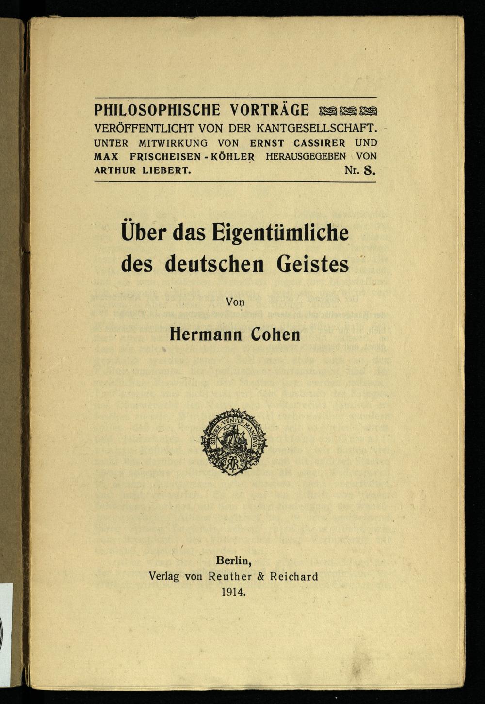 Über das Eigentümliche des deutschen Geistes / von Hermann Cohen
