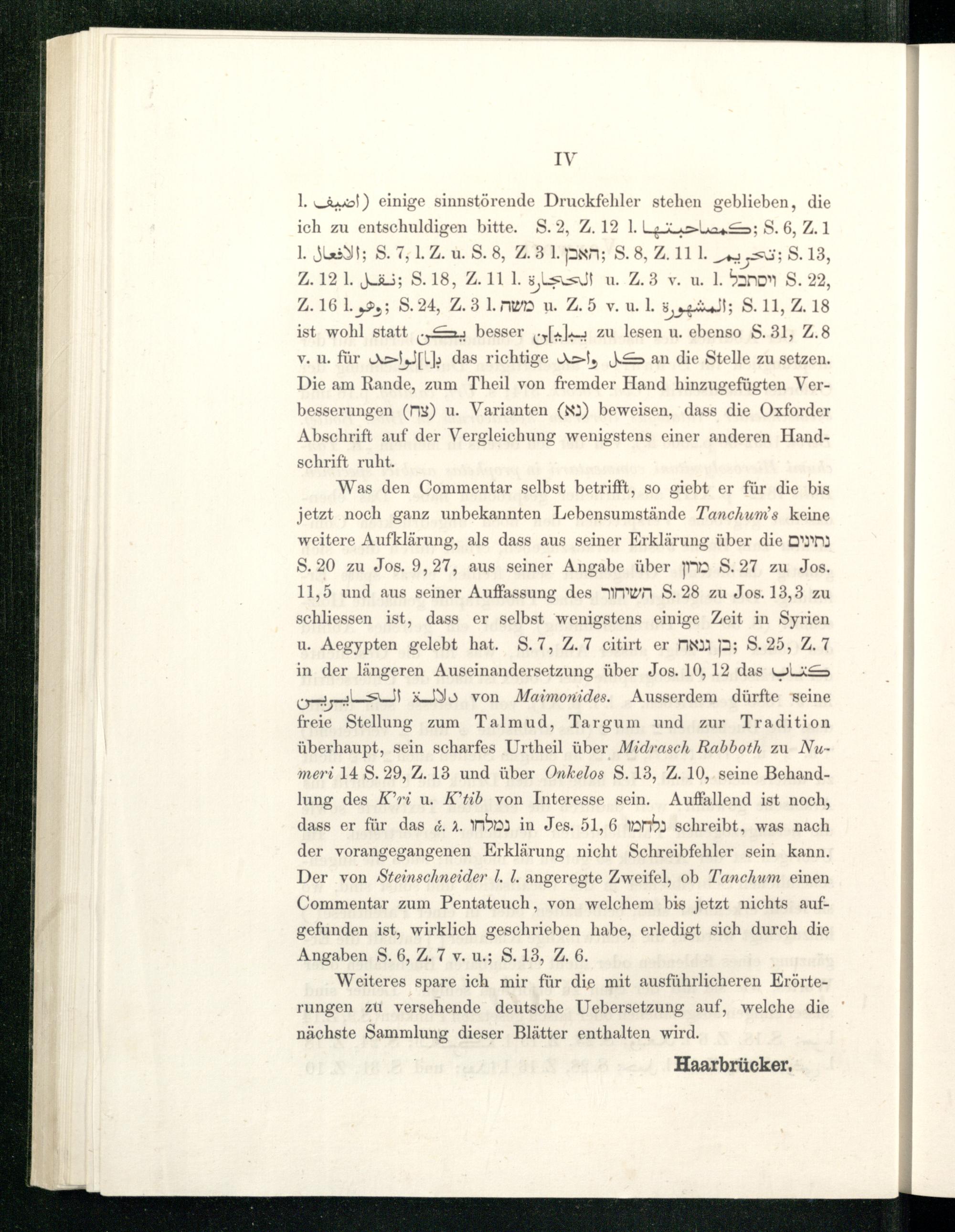 Rabbi Tanchum Jeruschalmi. Arabischer Commentar zum Buche Josua.