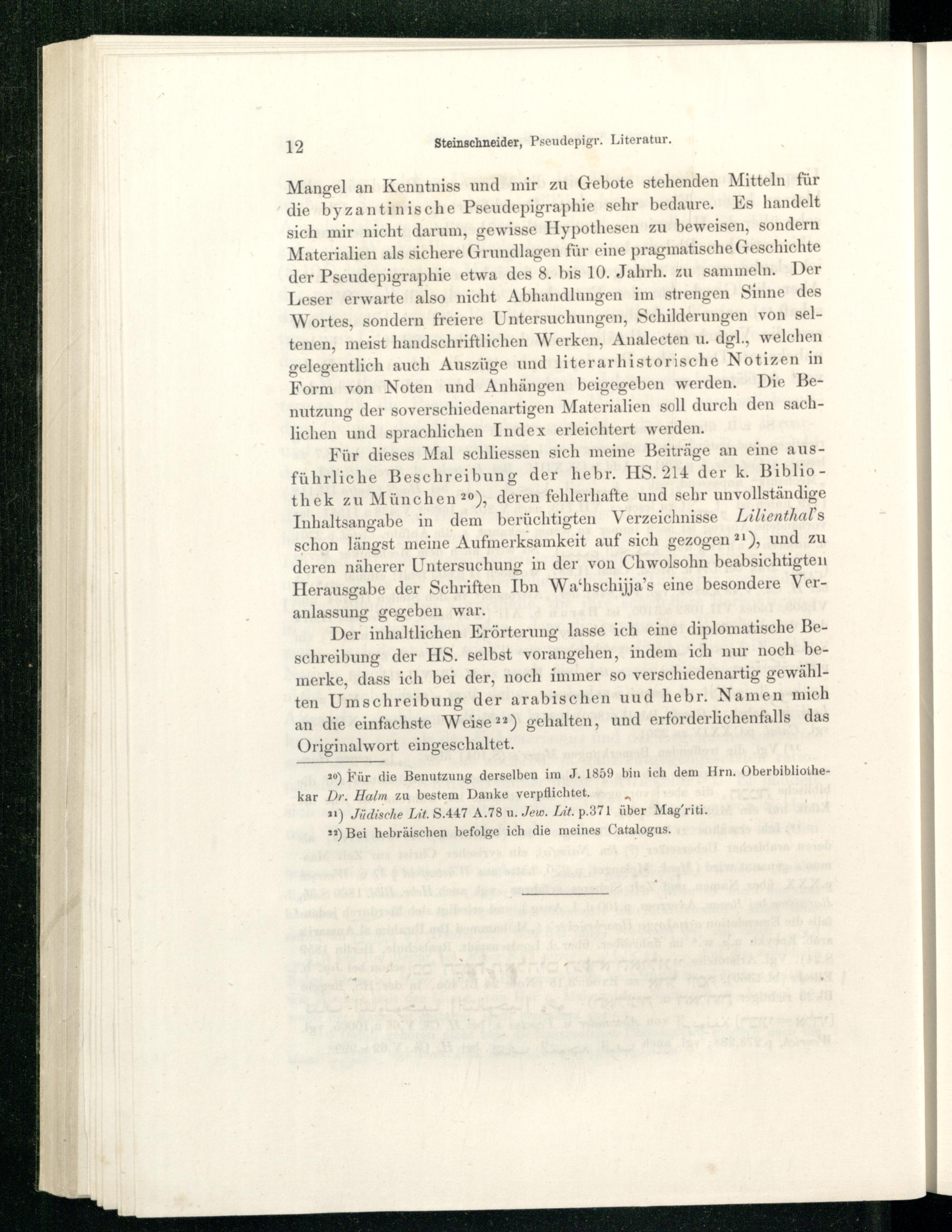 Zur pseudepigraphischen Literatur insbesondere der geheimen Wissenschaften des Mittelalters / aus hebräischen und arabischen Quellen von M. Steinschneider