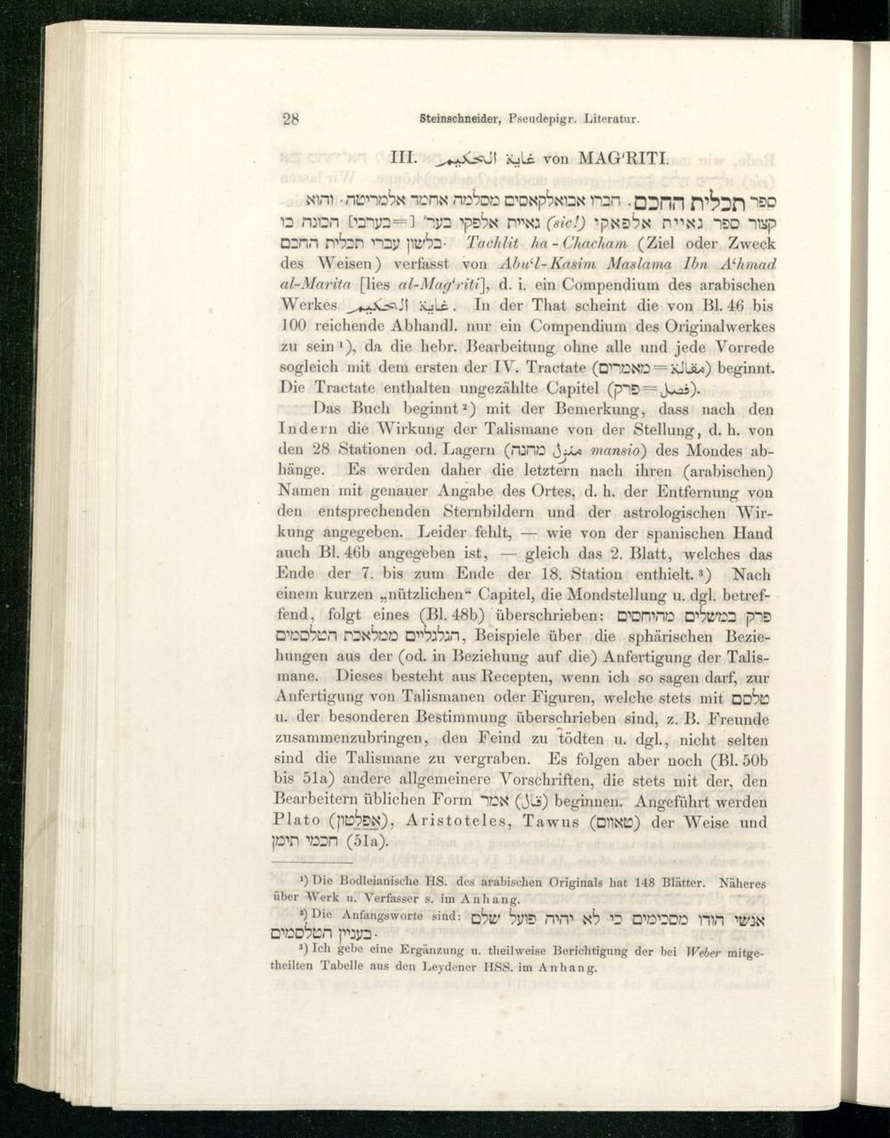Zur pseudepigraphischen Literatur insbesondere der geheimen Wissenschaften des Mittelalters / aus hebräischen und arabischen Quellen von M. Steinschneider