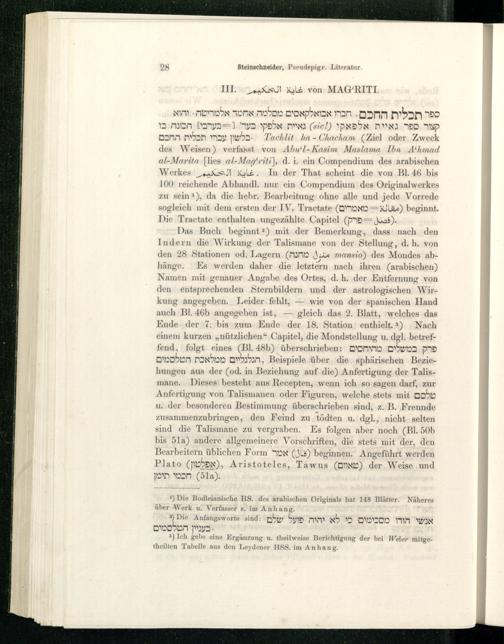 Zur Pseudepigraphischen Literatur insbesondere der geheimen Wissenschaften des M...