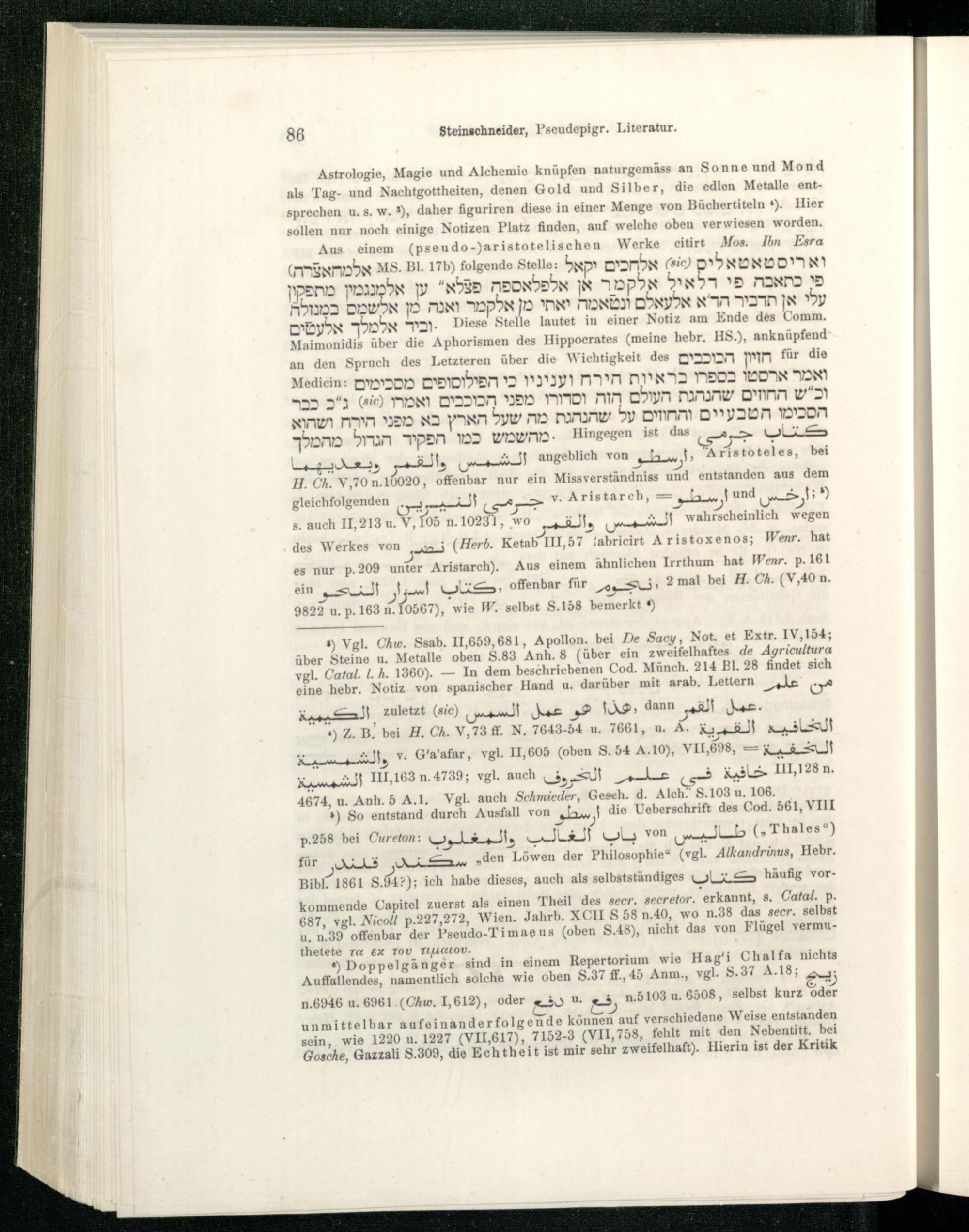 Zur pseudepigraphischen Literatur insbesondere der geheimen Wissenschaften des Mittelalters / aus hebräischen und arabischen Quellen von M. Steinschneider