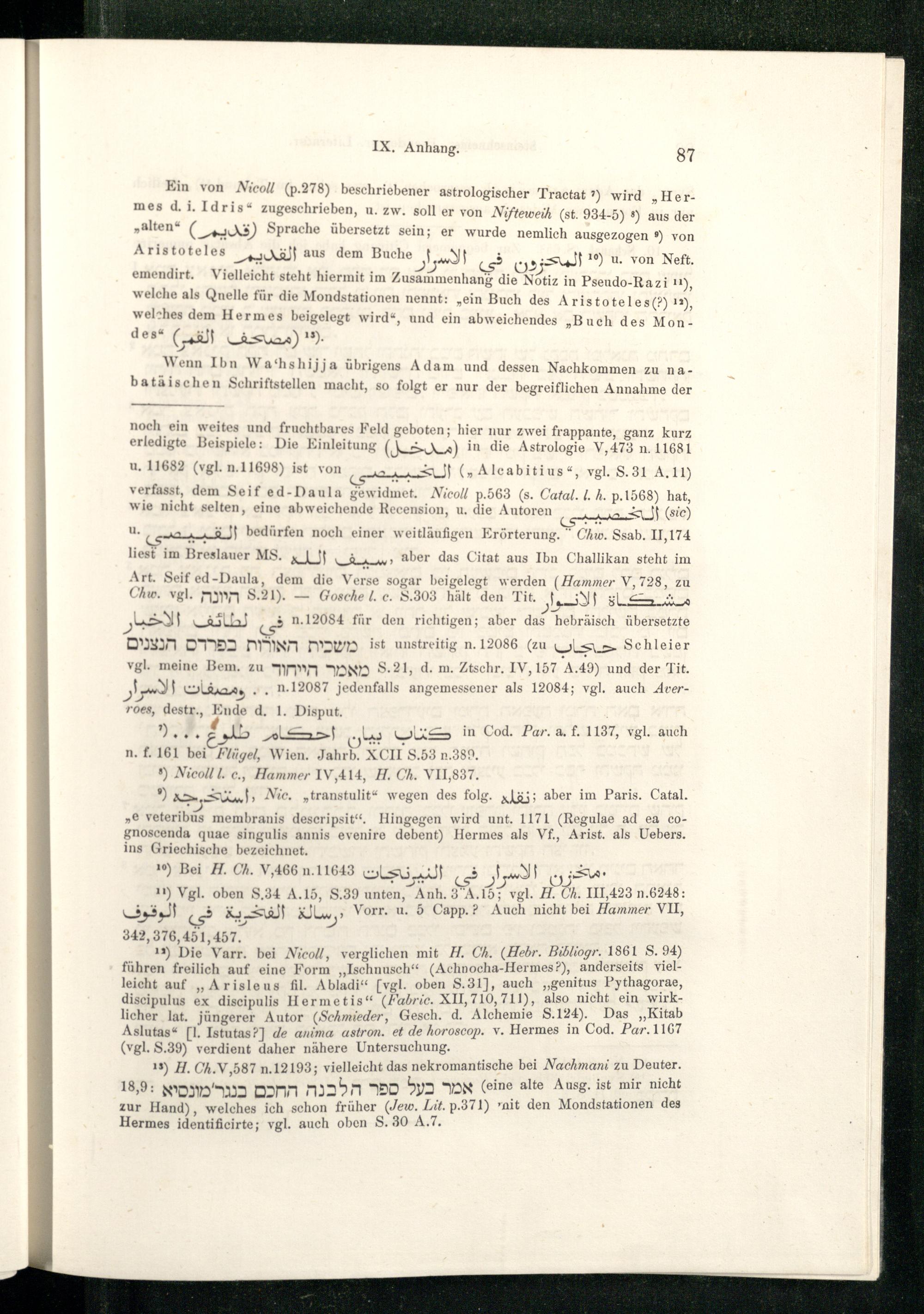 Zur Pseudepigraphischen Literatur insbesondere der geheimen Wissenschaften des M...