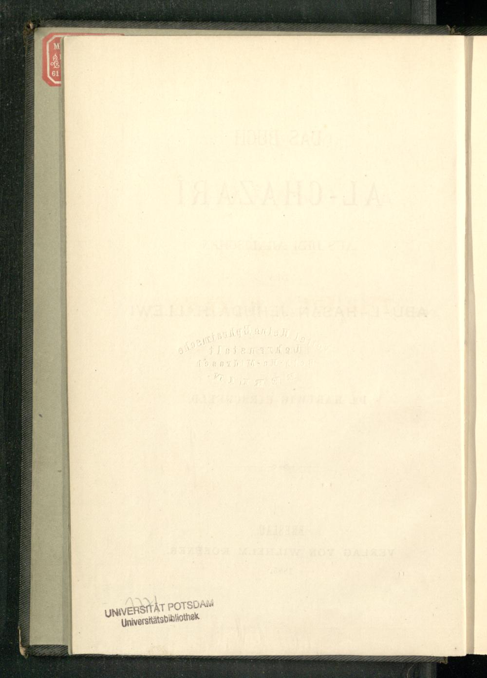 Das Buch al-Chazarî / aus dem Arabischen des Abu-l-Hasan Jehuda Hallewi ; übersetzt von Dr. Hartwig Hirschfeld