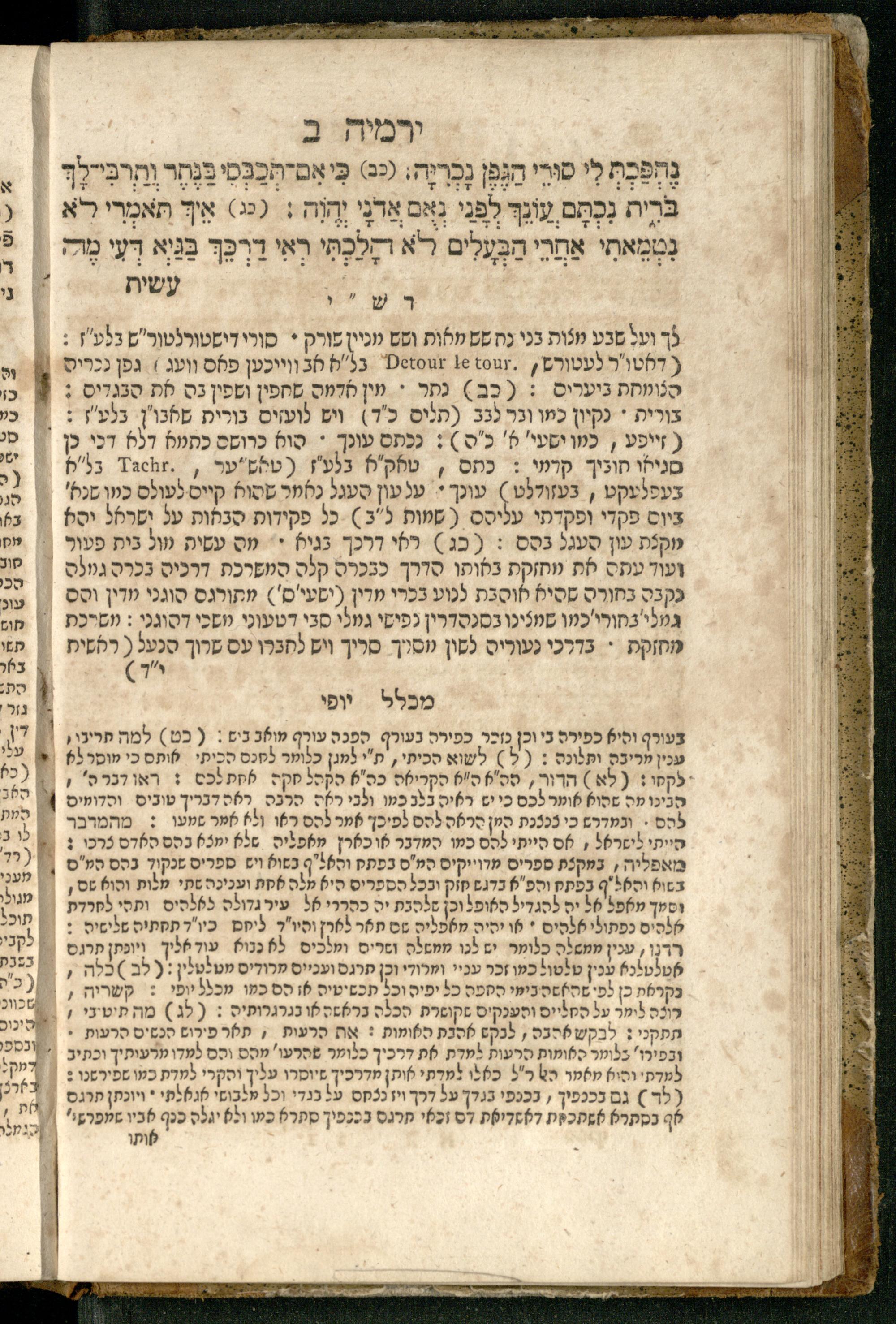 Sefer Yirmeyah / meturgam Ashkenazit u-mevoʾar me-rosh ha-sefer ʿad parashah 11, me-et ... Daṿid Oṭṭenzoser, u-mi-parashah 11 ʿad sof ha-sefer, me-et ... Shalom ha-Kohen n.r.v, gam hitsagti bo perush ... Rashi z.ts.l. ... Ṿe-nilṿeh elaṿ perush Mikhlal yofi ...ספר ירמיה / מתורגם אשכנזית ומבואר מראש הספר עד פרשה י״א, מאת ... דוד אטטענזאסער, ומפרשה י״א עד סוף הספר, מאת ... שלום הכהן נר״ו, גם הצגתי בו פירוש ... רש״י זצ״ל ... ונלוה אליו פירוש מכלל יופי ...