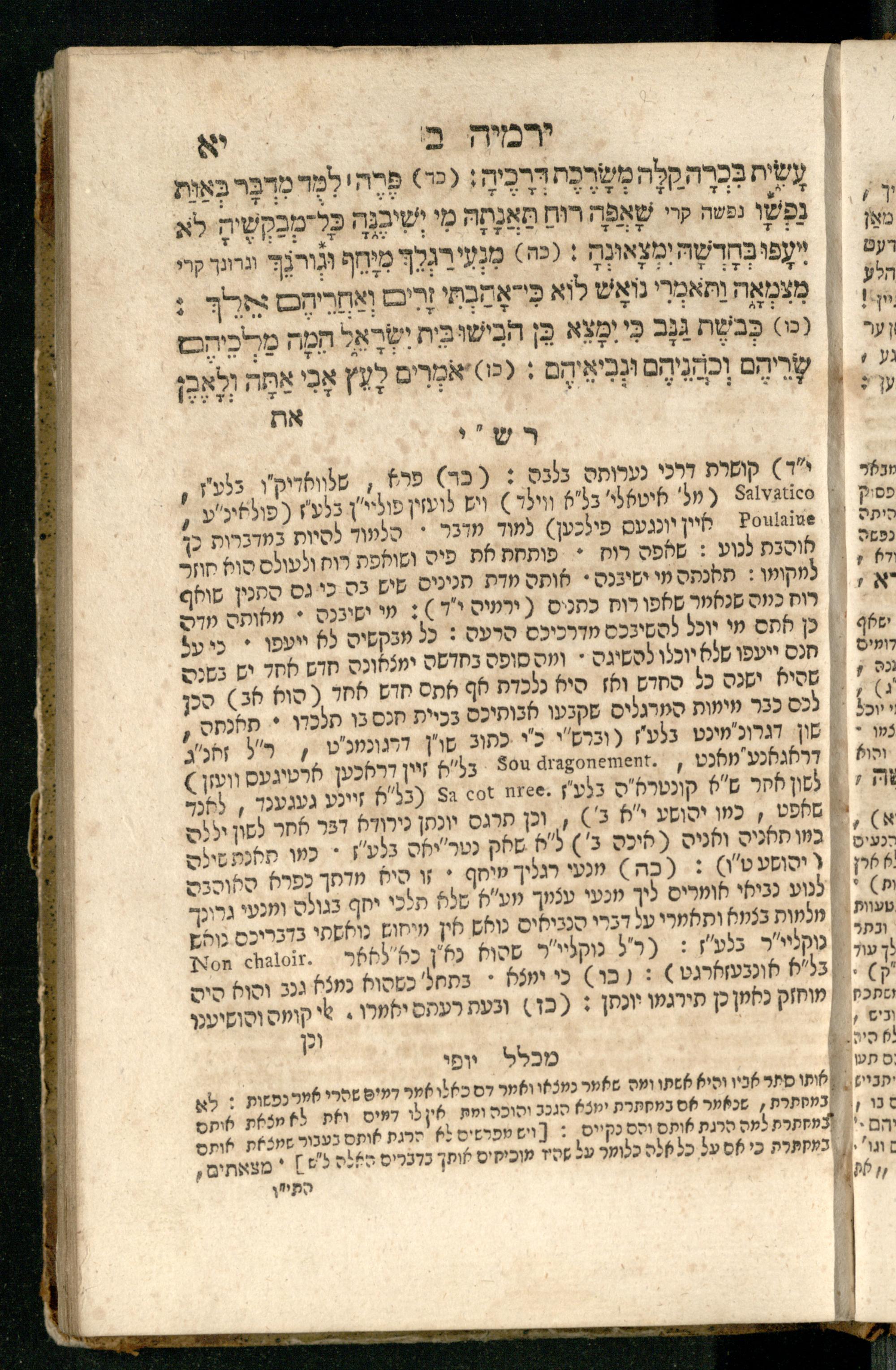 Sefer Yirmeyah / meturgam Ashkenazit u-mevoʾar me-rosh ha-sefer ʿad parashah 11, me-et ... Daṿid Oṭṭenzoser, u-mi-parashah 11 ʿad sof ha-sefer, me-et ... Shalom ha-Kohen n.r.v, gam hitsagti bo perush ... Rashi z.ts.l. ... Ṿe-nilṿeh elaṿ perush Mikhlal yofi ...ספר ירמיה / מתורגם אשכנזית ומבואר מראש הספר עד פרשה י״א, מאת ... דוד אטטענזאסער, ומפרשה י״א עד סוף הספר, מאת ... שלום הכהן נר״ו, גם הצגתי בו פירוש ... רש״י זצ״ל ... ונלוה אליו פירוש מכלל יופי ...