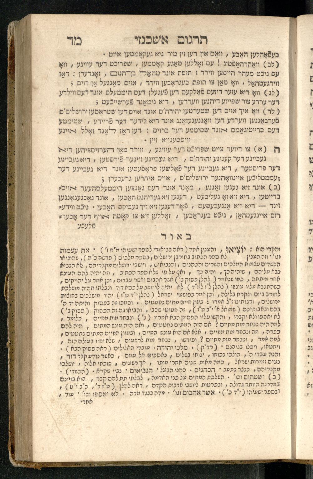 Sefer Yirmeyah / meturgam Ashkenazit u-mevoʾar me-rosh ha-sefer ʿad parashah 11, me-et ... Daṿid Oṭṭenzoser, u-mi-parashah 11 ʿad sof ha-sefer, me-et ... Shalom ha-Kohen n.r.v, gam hitsagti bo perush ... Rashi z.ts.l. ... Ṿe-nilṿeh elaṿ perush Mikhlal yofi ...ספר ירמיה / מתורגם אשכנזית ומבואר מראש הספר עד פרשה י״א, מאת ... דוד אטטענזאסער, ומפרשה י״א עד סוף הספר, מאת ... שלום הכהן נר״ו, גם הצגתי בו פירוש ... רש״י זצ״ל ... ונלוה אליו פירוש מכלל יופי ...