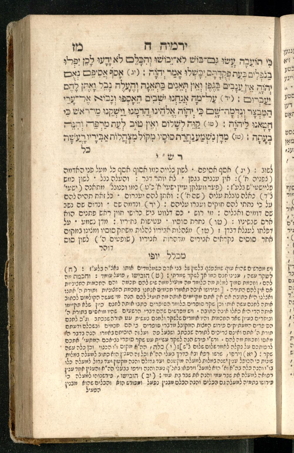 Sefer Yirmeyah / meturgam Ashkenazit u-mevoʾar me-rosh ha-sefer ʿad parashah 11, me-et ... Daṿid Oṭṭenzoser, u-mi-parashah 11 ʿad sof ha-sefer, me-et ... Shalom ha-Kohen n.r.v, gam hitsagti bo perush ... Rashi z.ts.l. ... Ṿe-nilṿeh elaṿ perush Mikhlal yofi ...ספר ירמיה / מתורגם אשכנזית ומבואר מראש הספר עד פרשה י״א, מאת ... דוד אטטענזאסער, ומפרשה י״א עד סוף הספר, מאת ... שלום הכהן נר״ו, גם הצגתי בו פירוש ... רש״י זצ״ל ... ונלוה אליו פירוש מכלל יופי ...