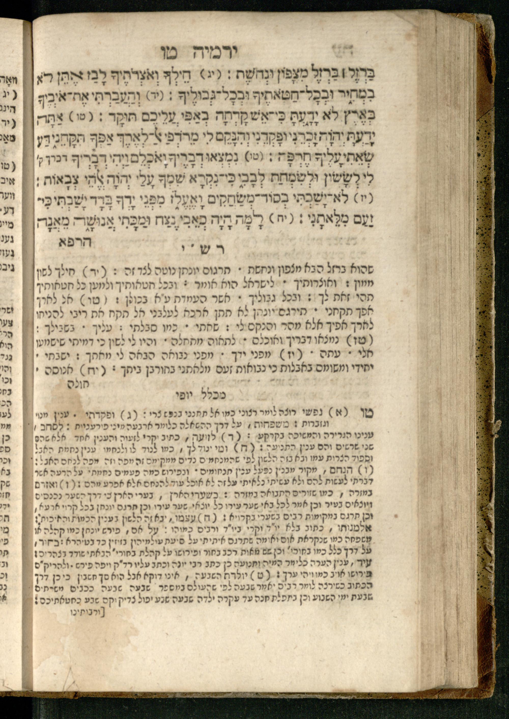 Sefer Yirmeyah / meturgam Ashkenazit u-mevoʾar me-rosh ha-sefer ʿad parashah 11, me-et ... Daṿid Oṭṭenzoser, u-mi-parashah 11 ʿad sof ha-sefer, me-et ... Shalom ha-Kohen n.r.v, gam hitsagti bo perush ... Rashi z.ts.l. ... Ṿe-nilṿeh elaṿ perush Mikhlal yofi ...ספר ירמיה / מתורגם אשכנזית ומבואר מראש הספר עד פרשה י״א, מאת ... דוד אטטענזאסער, ומפרשה י״א עד סוף הספר, מאת ... שלום הכהן נר״ו, גם הצגתי בו פירוש ... רש״י זצ״ל ... ונלוה אליו פירוש מכלל יופי ...