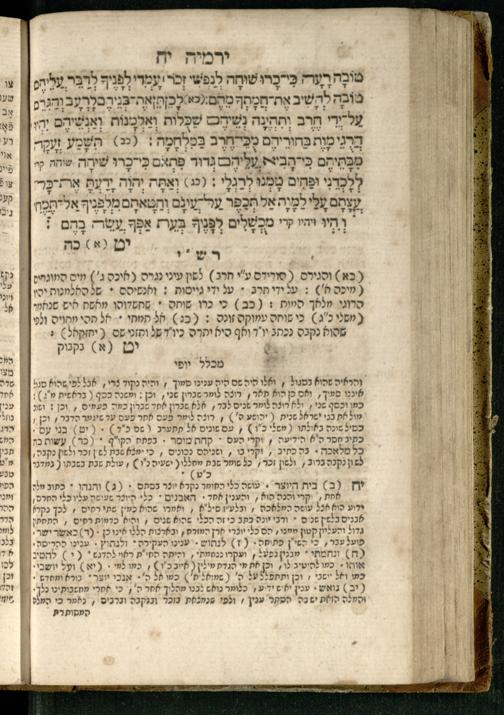 Sefer Yirmeyah / meturgam Ashkenazit u-mevoʾar me-rosh ha-sefer ʿad parashah 11, me-et ... Daṿid Oṭṭenzoser, u-mi-parashah 11 ʿad sof ha-sefer, me-et ... Shalom ha-Kohen n.r.v, gam hitsagti bo perush ... Rashi z.ts.l. ... Ṿe-nilṿeh elaṿ perush Mikhlal yofi ...ספר ירמיה / מתורגם אשכנזית ומבואר מראש הספר עד פרשה י״א, מאת ... דוד אטטענזאסער, ומפרשה י״א עד סוף הספר, מאת ... שלום הכהן נר״ו, גם הצגתי בו פירוש ... רש״י זצ״ל ... ונלוה אליו פירוש מכלל יופי ...