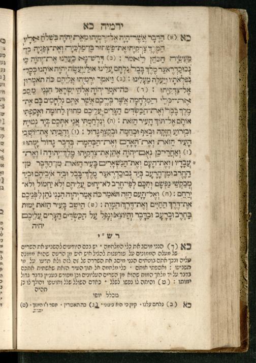 Sefer Yirmeyah / meturgam Ashkenazit u-mevoʾar me-rosh ha-sefer ʿad parashah 11, me-et ... Daṿid Oṭṭenzoser, u-mi-parashah 11 ʿad sof ha-sefer, me-et ... Shalom ha-Kohen n.r.v, gam hitsagti bo perush ... Rashi z.ts.l. ... Ṿe-nilṿeh elaṿ perush Mikhlal yofi ...ספר ירמיה / מתורגם אשכנזית ומבואר מראש הספר עד פרשה י״א, מאת ... דוד אטטענזאסער, ומפרשה י״א עד סוף הספר, מאת ... שלום הכהן נר״ו, גם הצגתי בו פירוש ... רש״י זצ״ל ... ונלוה אליו פירוש מכלל יופי ...