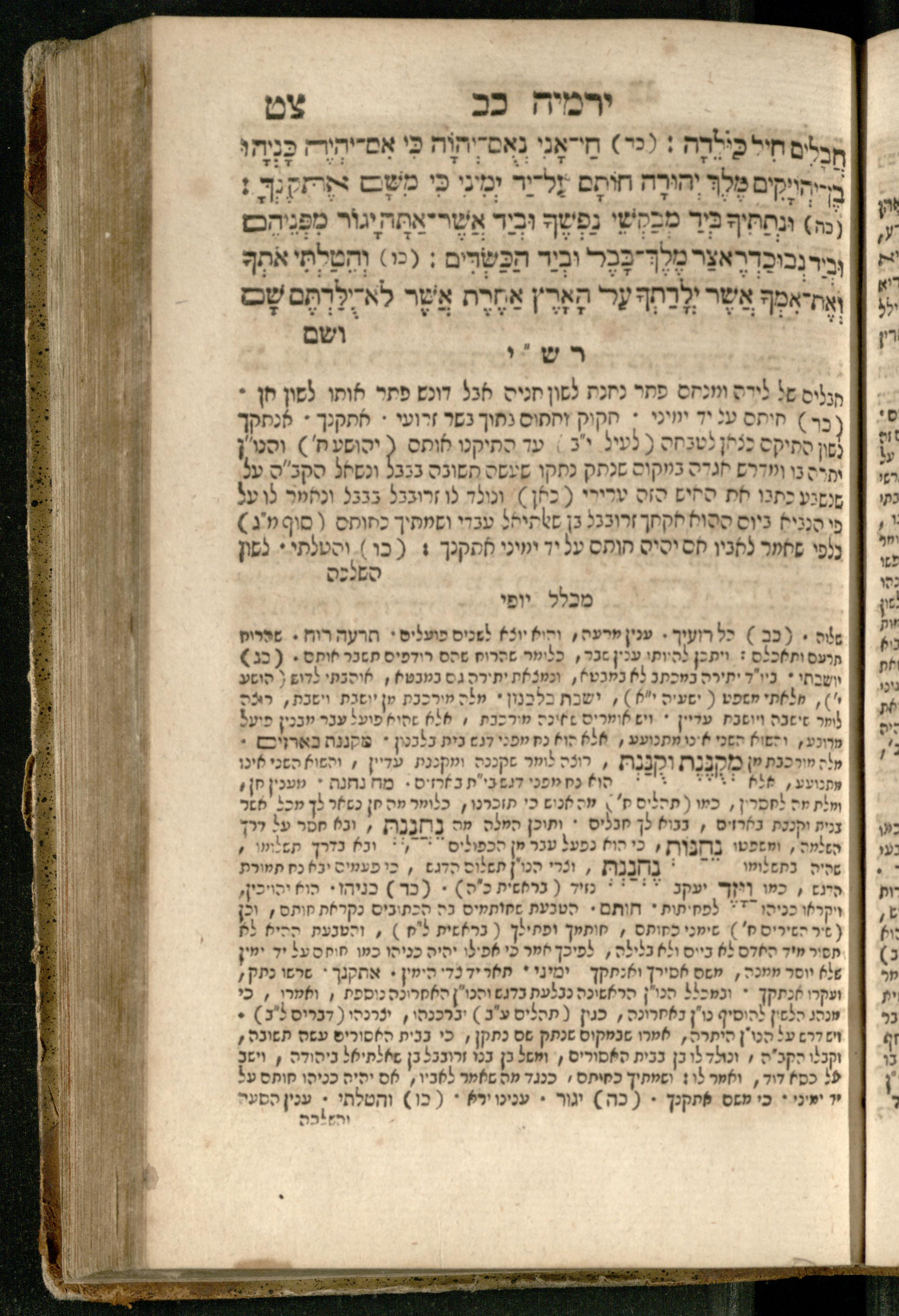 Sefer Yirmeyah / meturgam Ashkenazit u-mevoʾar me-rosh ha-sefer ʿad parashah 11, me-et ... Daṿid Oṭṭenzoser, u-mi-parashah 11 ʿad sof ha-sefer, me-et ... Shalom ha-Kohen n.r.v, gam hitsagti bo perush ... Rashi z.ts.l. ... Ṿe-nilṿeh elaṿ perush Mikhlal yofi ...ספר ירמיה / מתורגם אשכנזית ומבואר מראש הספר עד פרשה י״א, מאת ... דוד אטטענזאסער, ומפרשה י״א עד סוף הספר, מאת ... שלום הכהן נר״ו, גם הצגתי בו פירוש ... רש״י זצ״ל ... ונלוה אליו פירוש מכלל יופי ...