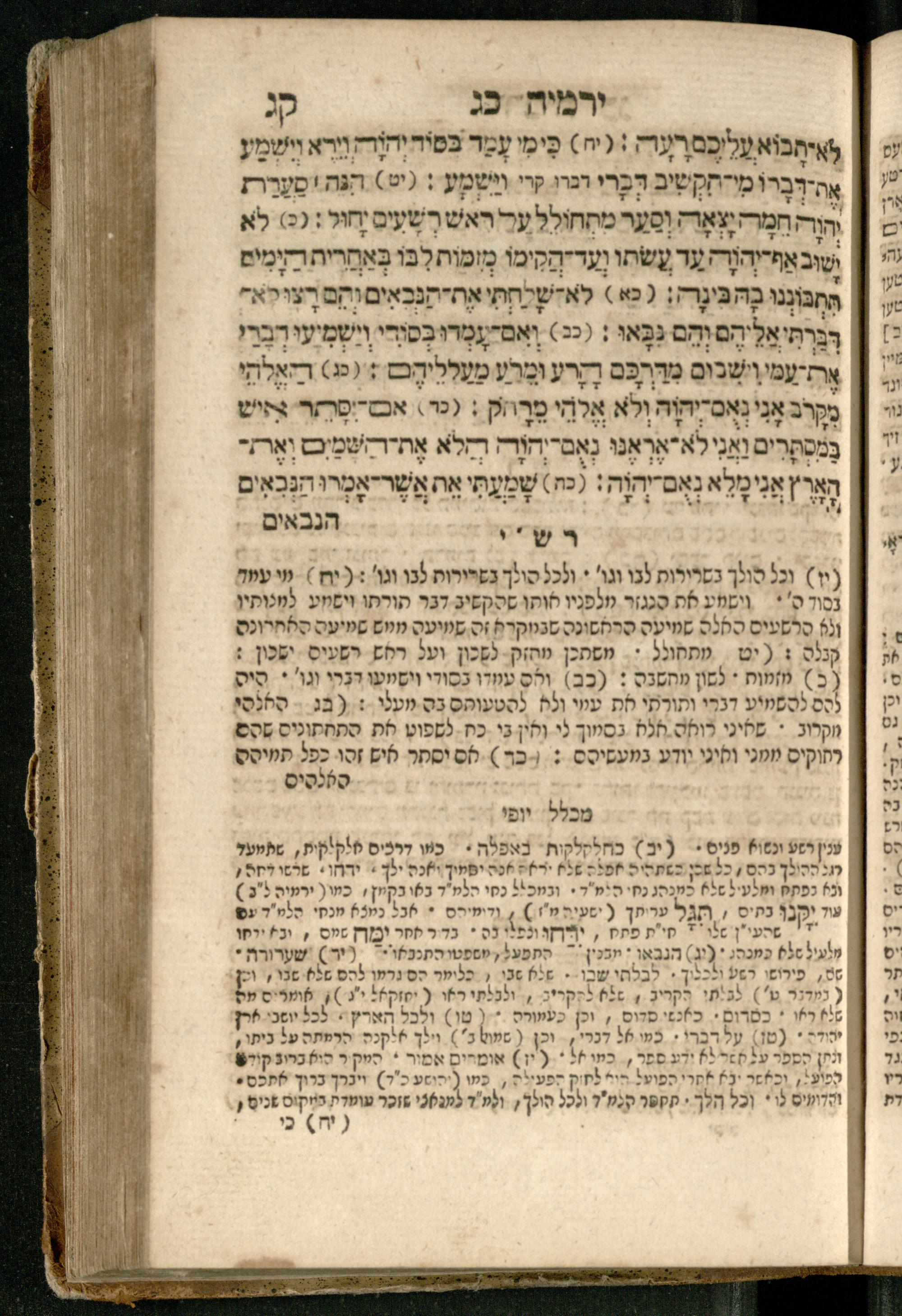 Sefer Yirmeyah / meturgam Ashkenazit u-mevoʾar me-rosh ha-sefer ʿad parashah 11, me-et ... Daṿid Oṭṭenzoser, u-mi-parashah 11 ʿad sof ha-sefer, me-et ... Shalom ha-Kohen n.r.v, gam hitsagti bo perush ... Rashi z.ts.l. ... Ṿe-nilṿeh elaṿ perush Mikhlal yofi ...ספר ירמיה / מתורגם אשכנזית ומבואר מראש הספר עד פרשה י״א, מאת ... דוד אטטענזאסער, ומפרשה י״א עד סוף הספר, מאת ... שלום הכהן נר״ו, גם הצגתי בו פירוש ... רש״י זצ״ל ... ונלוה אליו פירוש מכלל יופי ...