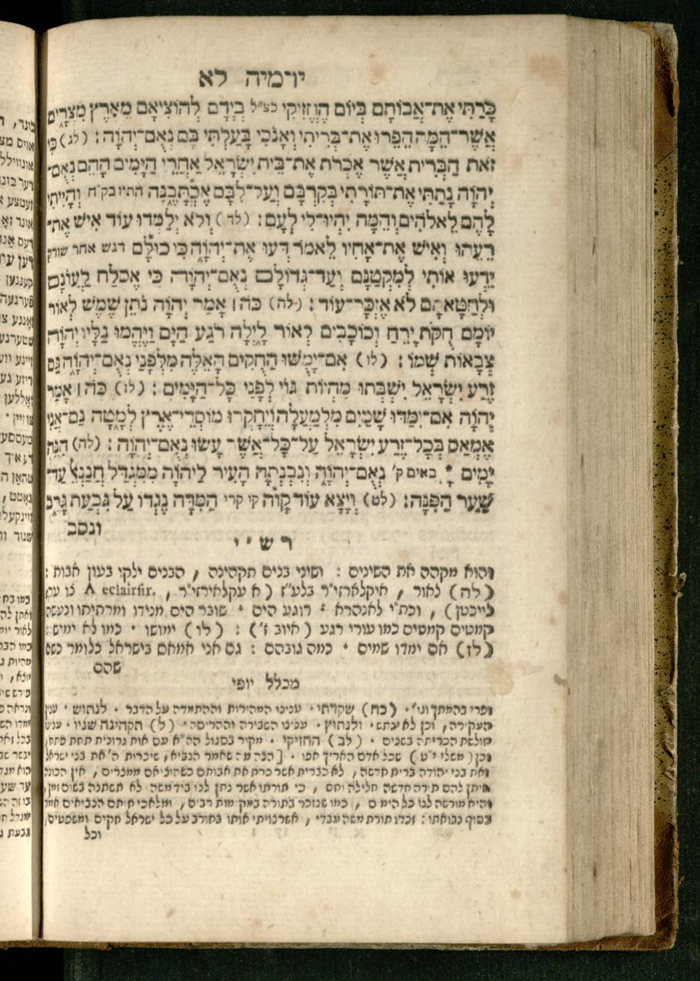 Sefer Yirmeyah / meturgam Ashkenazit u-mevoʾar me-rosh ha-sefer ʿad parashah 11, me-et ... Daṿid Oṭṭenzoser, u-mi-parashah 11 ʿad sof ha-sefer, me-et ... Shalom ha-Kohen n.r.v, gam hitsagti bo perush ... Rashi z.ts.l. ... Ṿe-nilṿeh elaṿ perush Mikhlal yofi ...ספר ירמיה / מתורגם אשכנזית ומבואר מראש הספר עד פרשה י״א, מאת ... דוד אטטענזאסער, ומפרשה י״א עד סוף הספר, מאת ... שלום הכהן נר״ו, גם הצגתי בו פירוש ... רש״י זצ״ל ... ונלוה אליו פירוש מכלל יופי ...