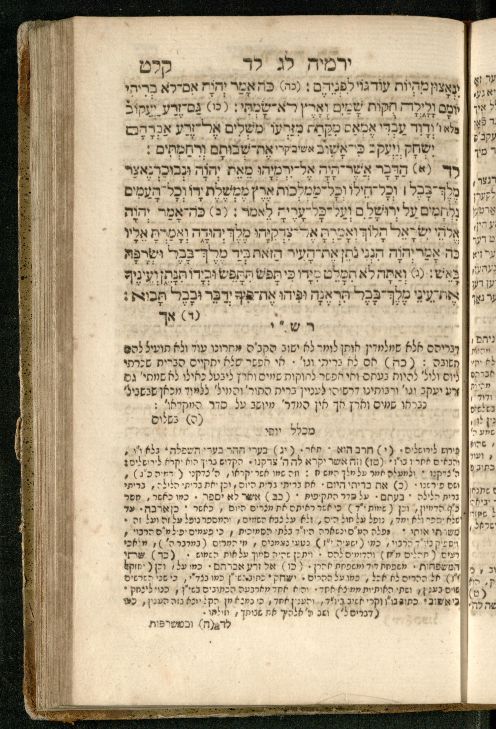 Sefer Yirmeyah / meturgam Ashkenazit u-mevoʾar me-rosh ha-sefer ʿad parashah 11, me-et ... Daṿid Oṭṭenzoser, u-mi-parashah 11 ʿad sof ha-sefer, me-et ... Shalom ha-Kohen n.r.v, gam hitsagti bo perush ... Rashi z.ts.l. ... Ṿe-nilṿeh elaṿ perush Mikhlal yofi ...ספר ירמיה / מתורגם אשכנזית ומבואר מראש הספר עד פרשה י״א, מאת ... דוד אטטענזאסער, ומפרשה י״א עד סוף הספר, מאת ... שלום הכהן נר״ו, גם הצגתי בו פירוש ... רש״י זצ״ל ... ונלוה אליו פירוש מכלל יופי ...